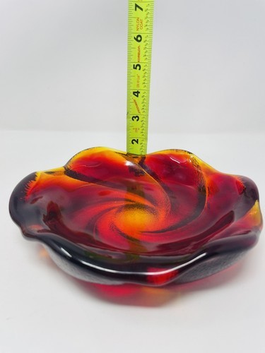 for a vintage late 70s Fenton swirl amberina heavy glass ashtray. 7.5" size. Excellent condition.