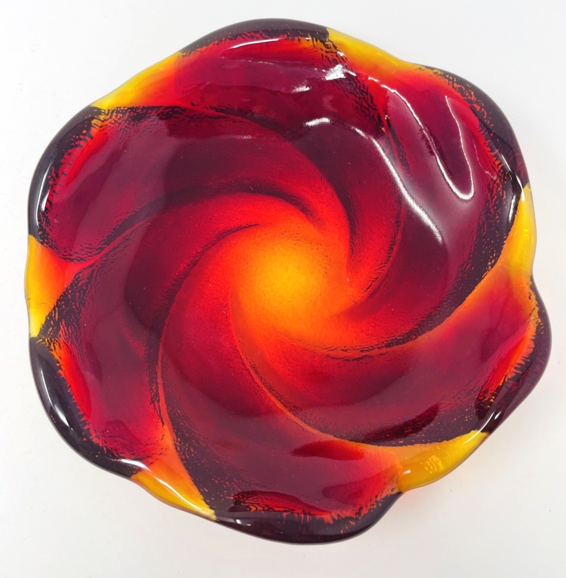 Fenton Freeform Swirl Amberina Art Glass Dish Bowl Ashtray 9176 7.5" 70s