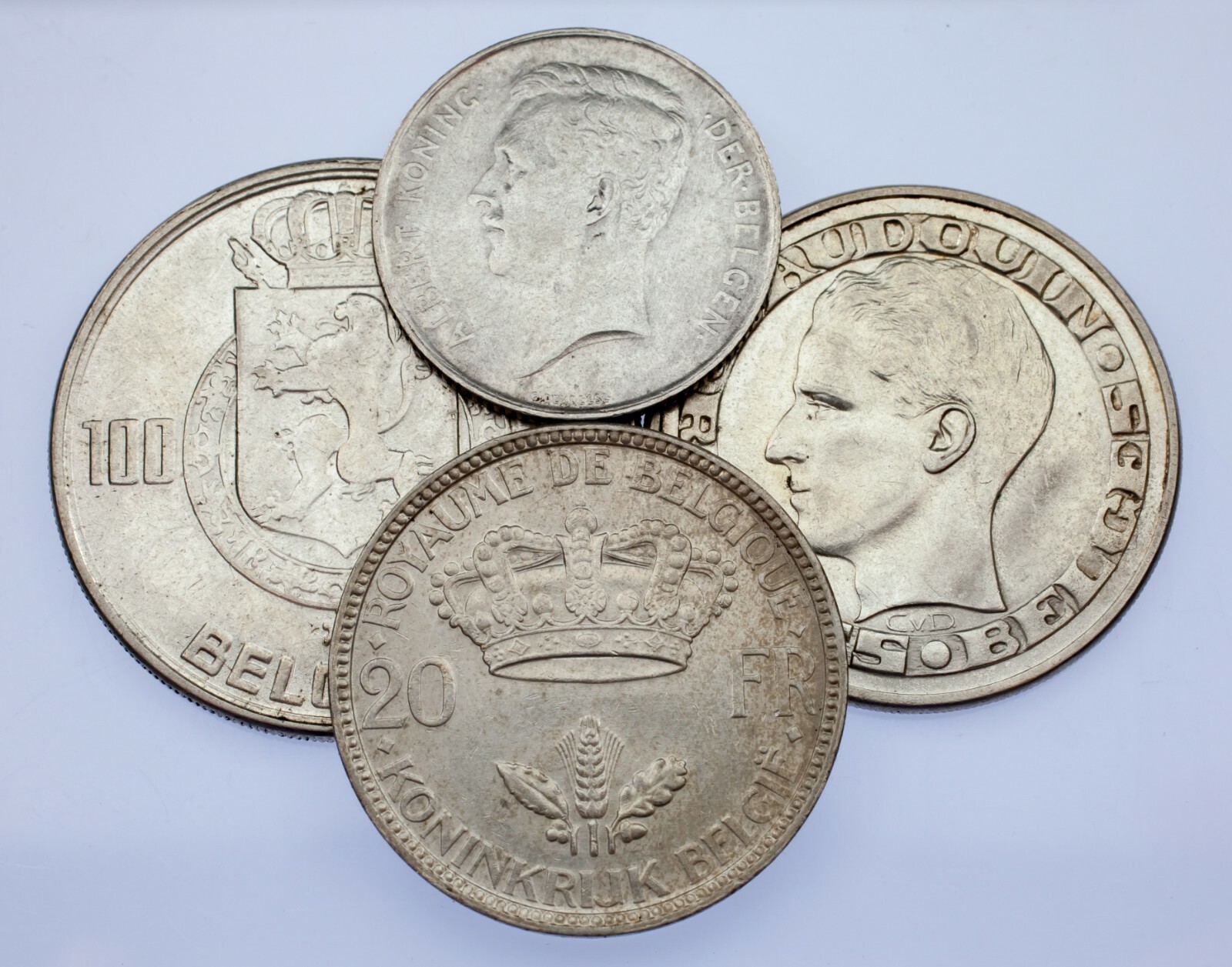 1910-1958 Belgique FRANC-100 FRANCS COIN LOT DE 4 (XF-AU) KM # 73.1, 105, 151.1, 138.1