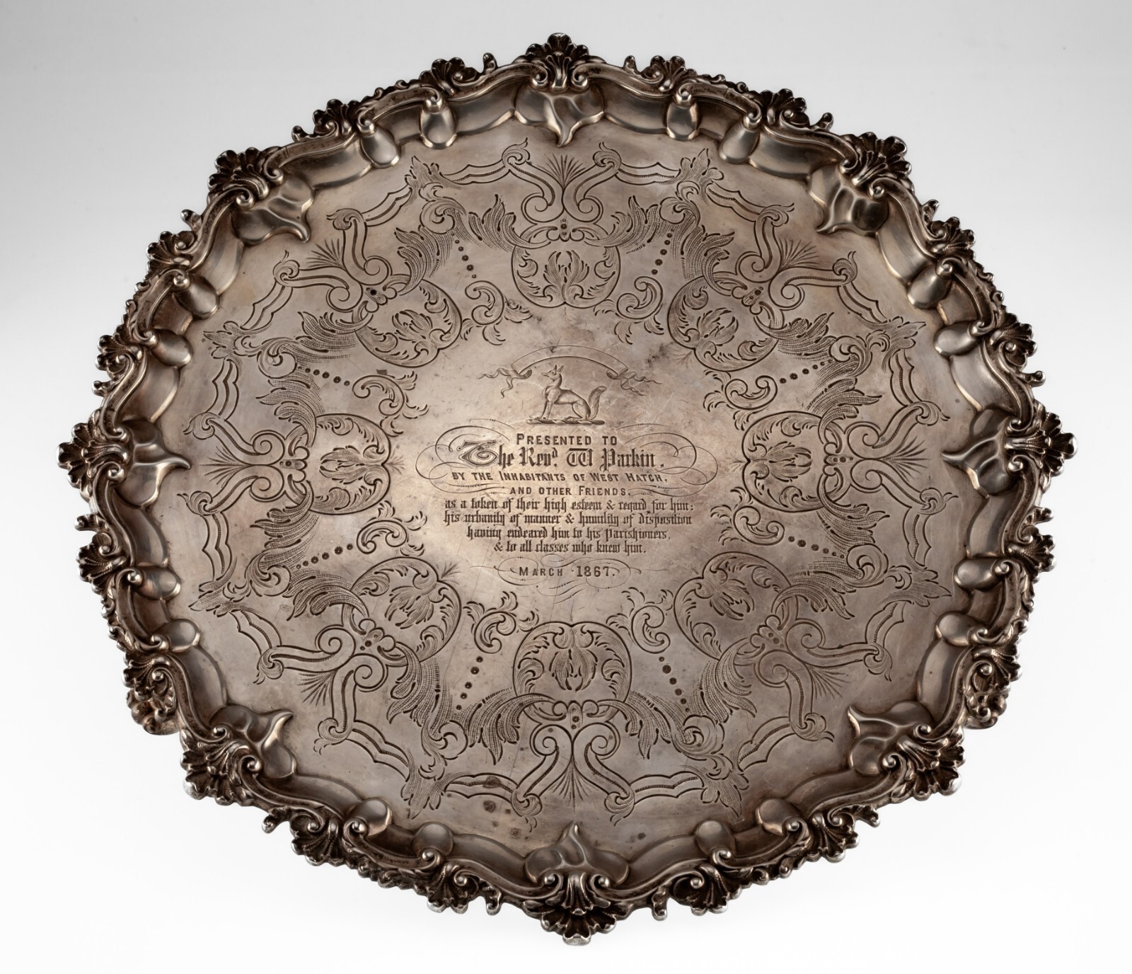 AB SAVORY SONS STERLING Silver 12 "Salver dedie au reverend Parkin 1865