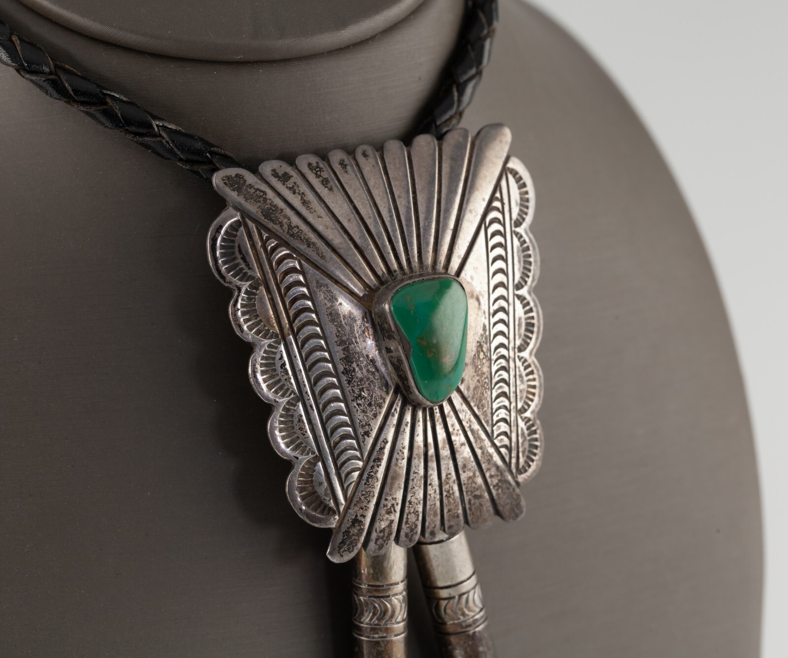 Argent Sterling Turquoise Bolo Cravate Avec Échoués Bracelet Cuir et Aiguillette