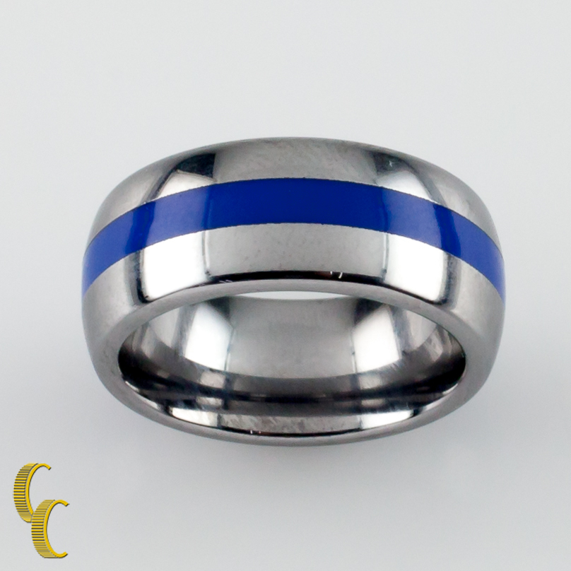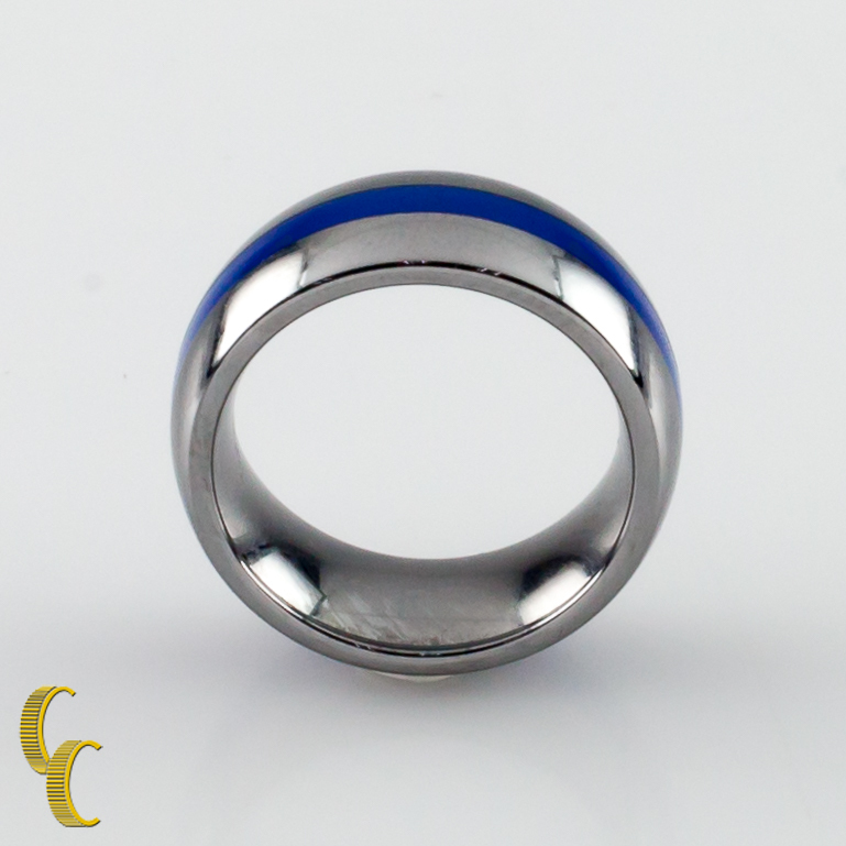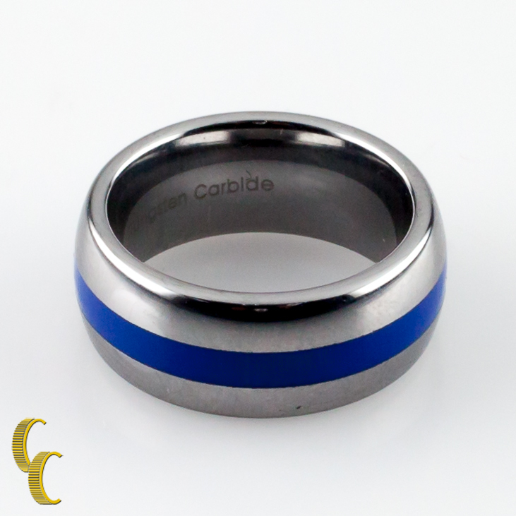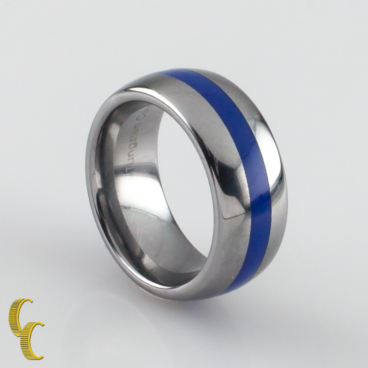 Homme Tungsten Carbure Anneau Bague W / Bleu Rayure Taille 5