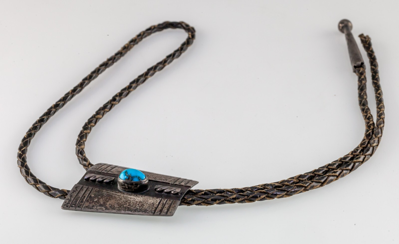 Turquoise Sterling Silver Turquoise Bolo avec cuir tresse un Aglet manquant