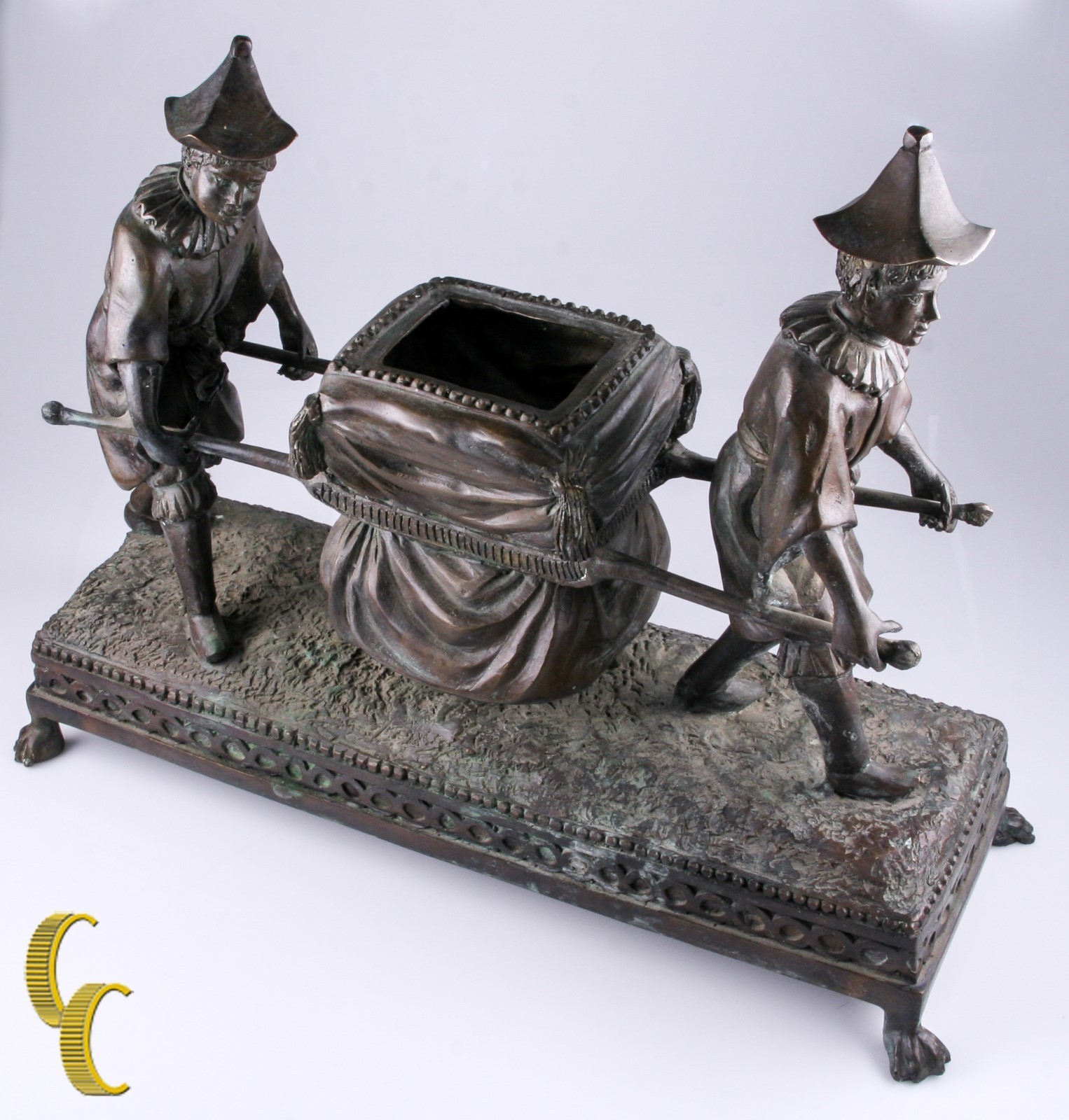 Maitland-Smith Bronze Sculpture De Deux Garçons avec Un Litière