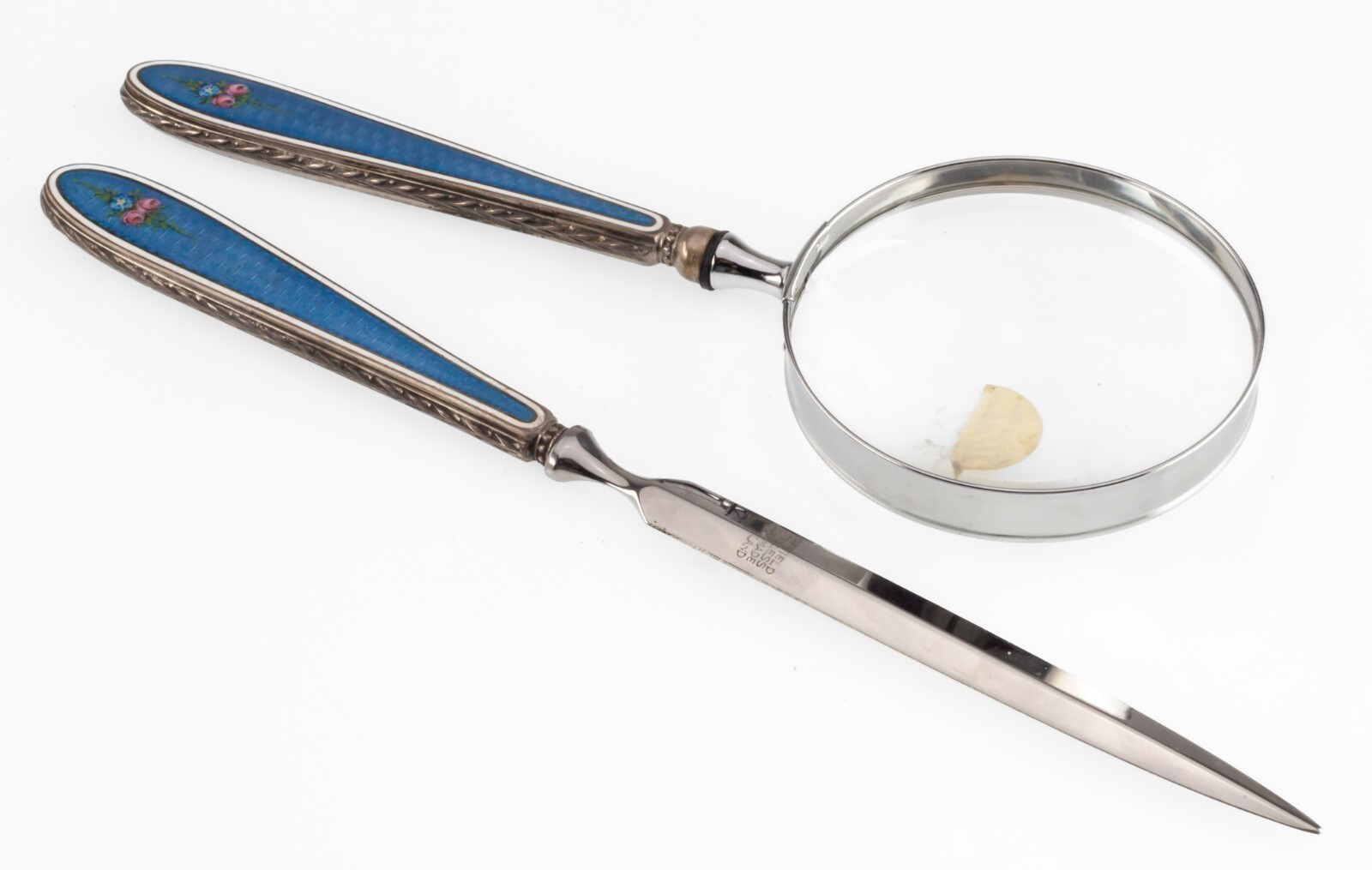 Argent Émail Guilloché Agrandissant Verre Et Ouvre-Lettre Ensemble Sheffield