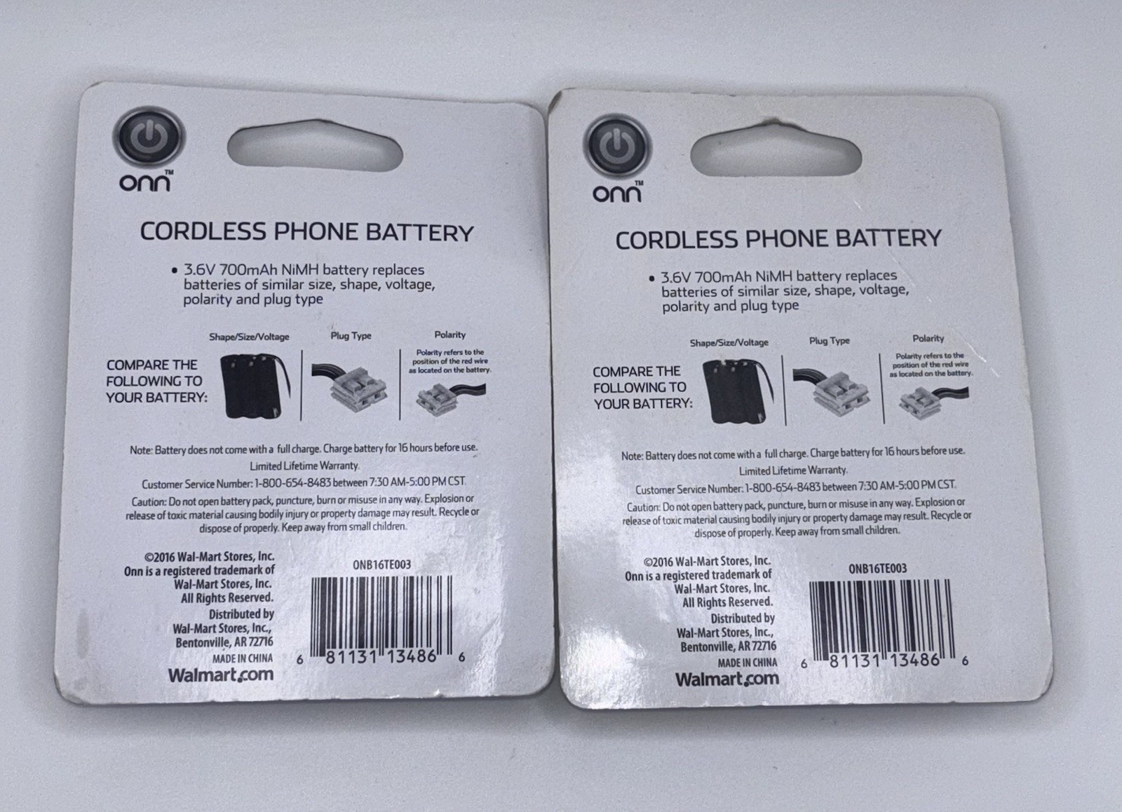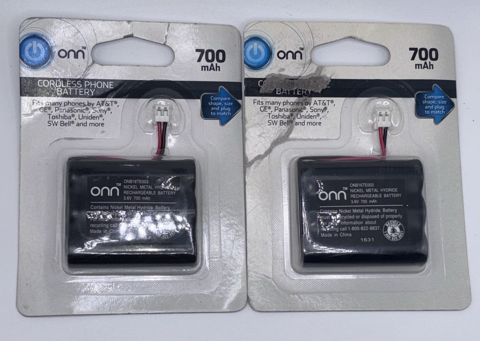 Lot of 2 ONN Cordless Phone Battery 3.6v 700 mAh Nimh Telephone Replacement Batteries