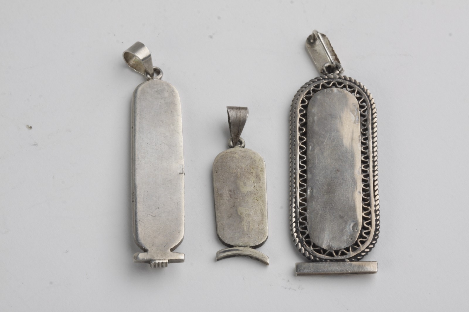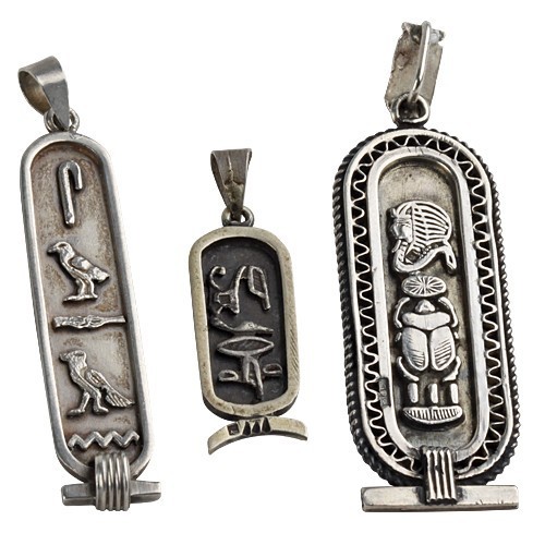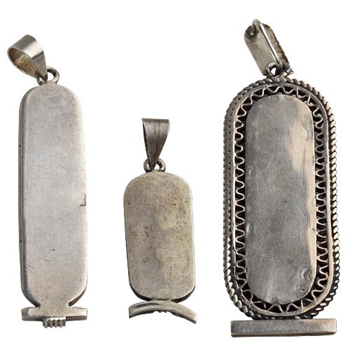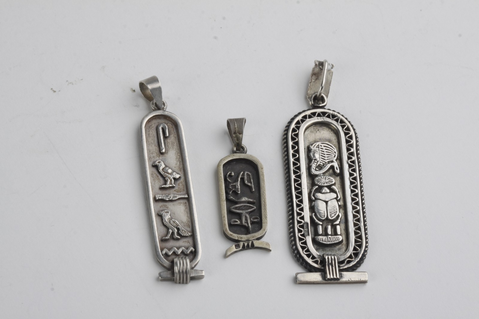 Trois 3 Vintage Argent Sterling Égyptien Nom Étiquette Hiéroglyphique Écriture