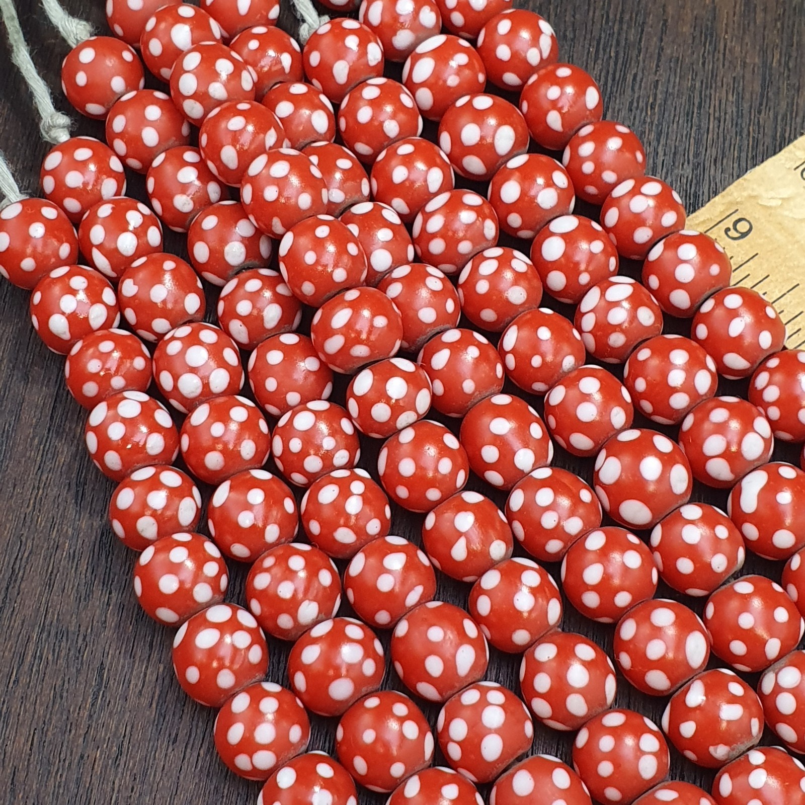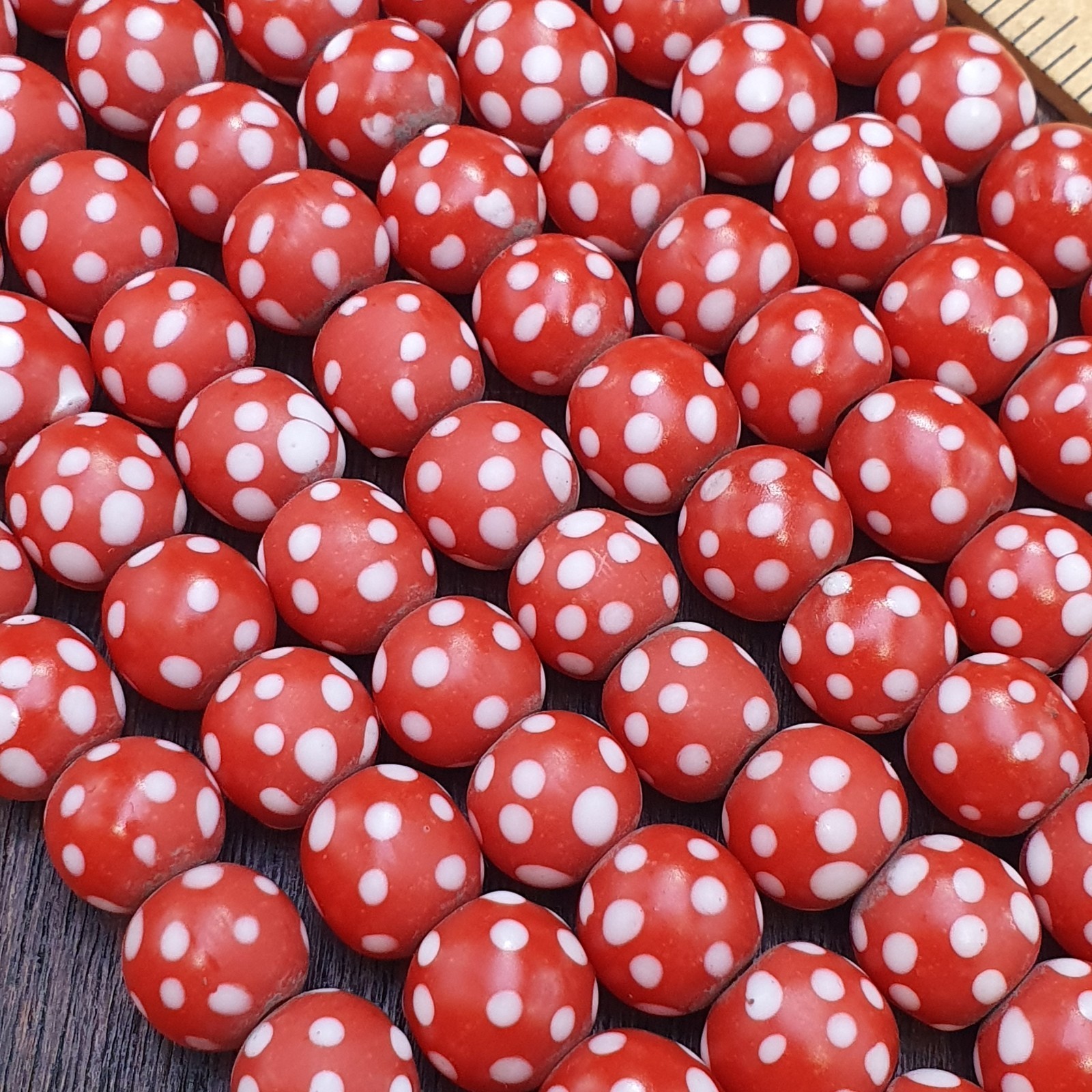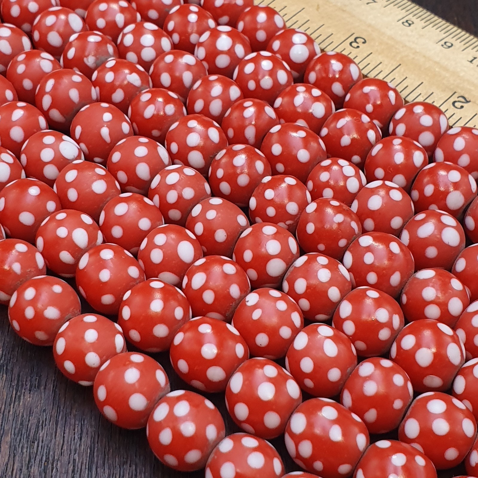 Skunk Venetian Inspired Beads 10mm Red Thousand Eye Polka Dots Beads