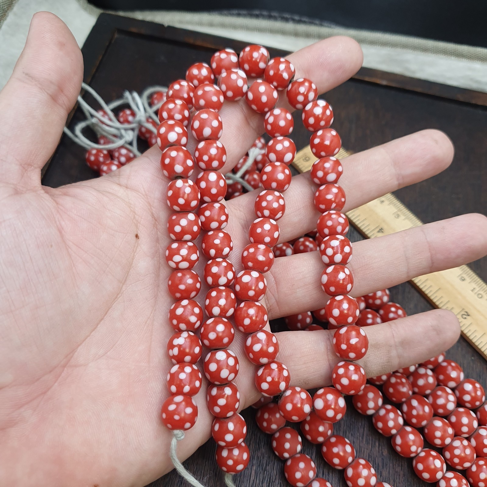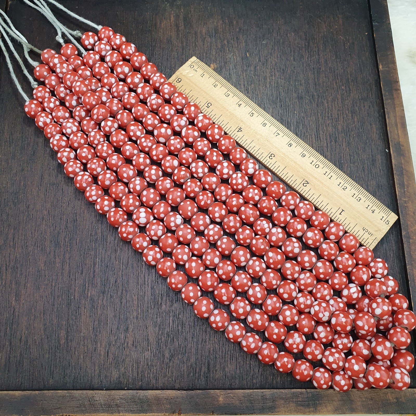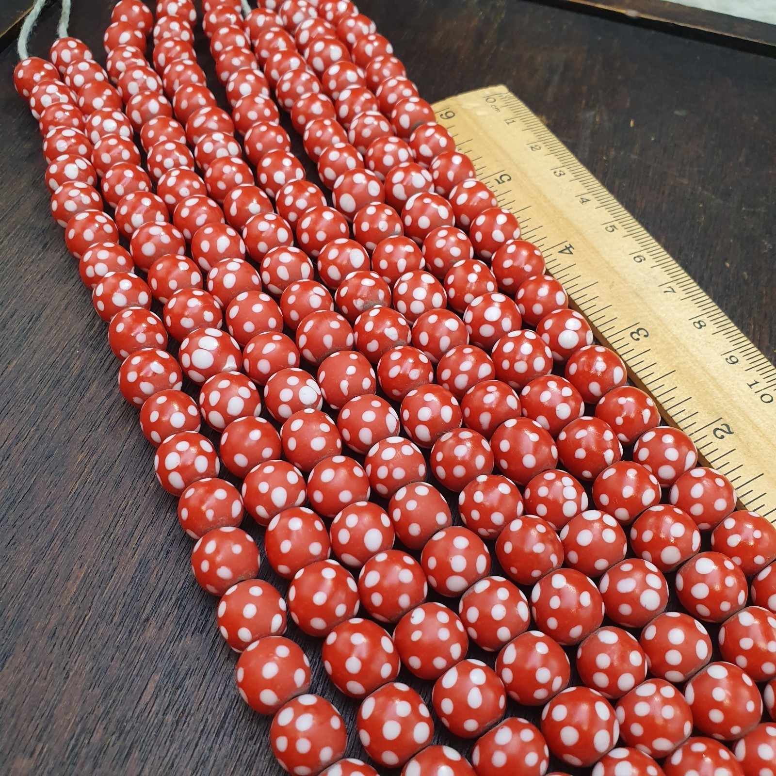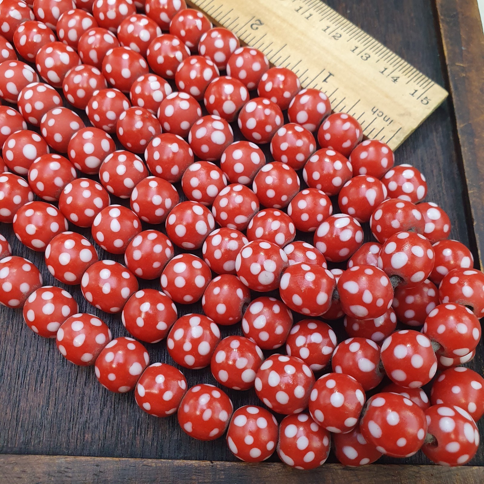 Skunk Venetian Inspired Beads 10mm Red Thousand Eye Polka Dots Beads
