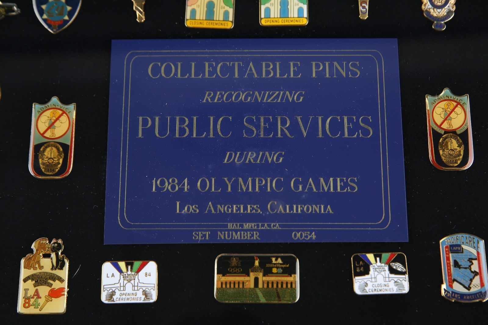 Les epingles de services publics comprennent: California Highway Patrol, le service de police de Los Angeles, le service du sherif de Los Angeles, Pinheads, les ceremonies d'ouverture, les ceremonies de cloture, le service d'incendie de Los Angeles, le vice-division, le service du bureau de donnees, les forces armees, le service de la Californie du comte de Los Angeles, la Commission de la police de Hawthorne, la Californie de la Californie, la Californie, la Californie, la Commission de la police, le Montery Field Hocke Los Angeles Public Works, Dopebusters, Berlitz et plus encore. (Un total de 96 broches sont incluses.)