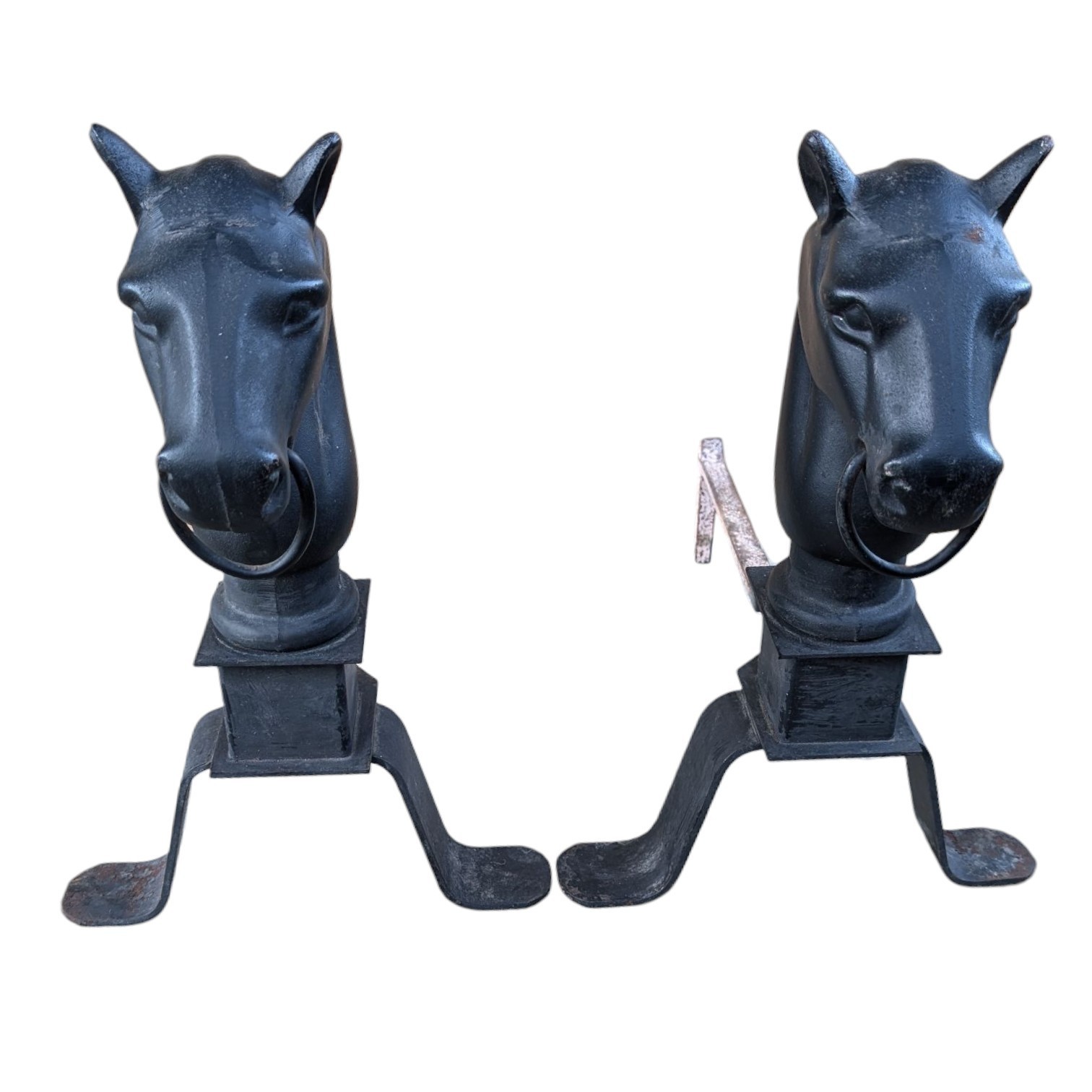 Antique Cast Iron Horse Head Andirons and 15 similar items