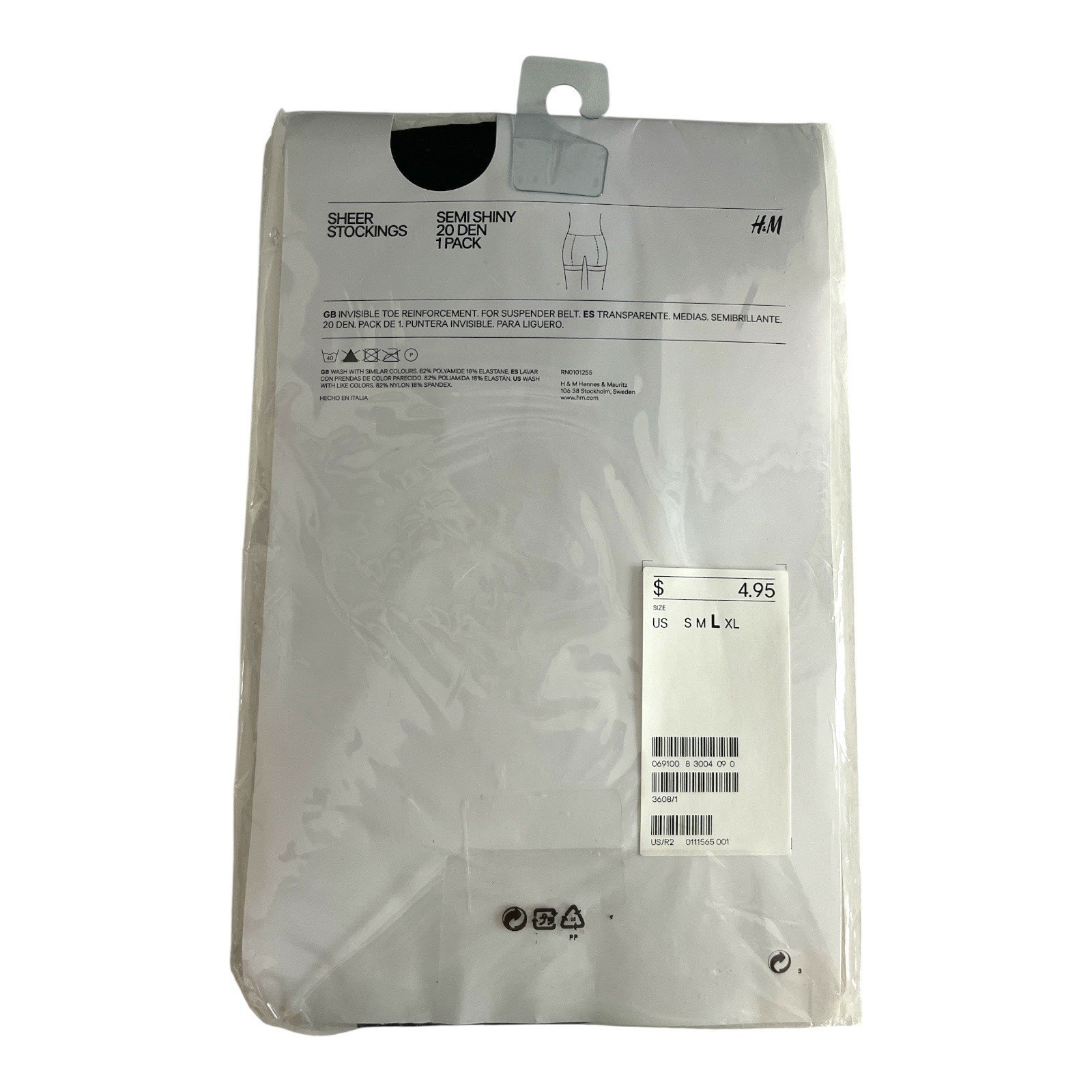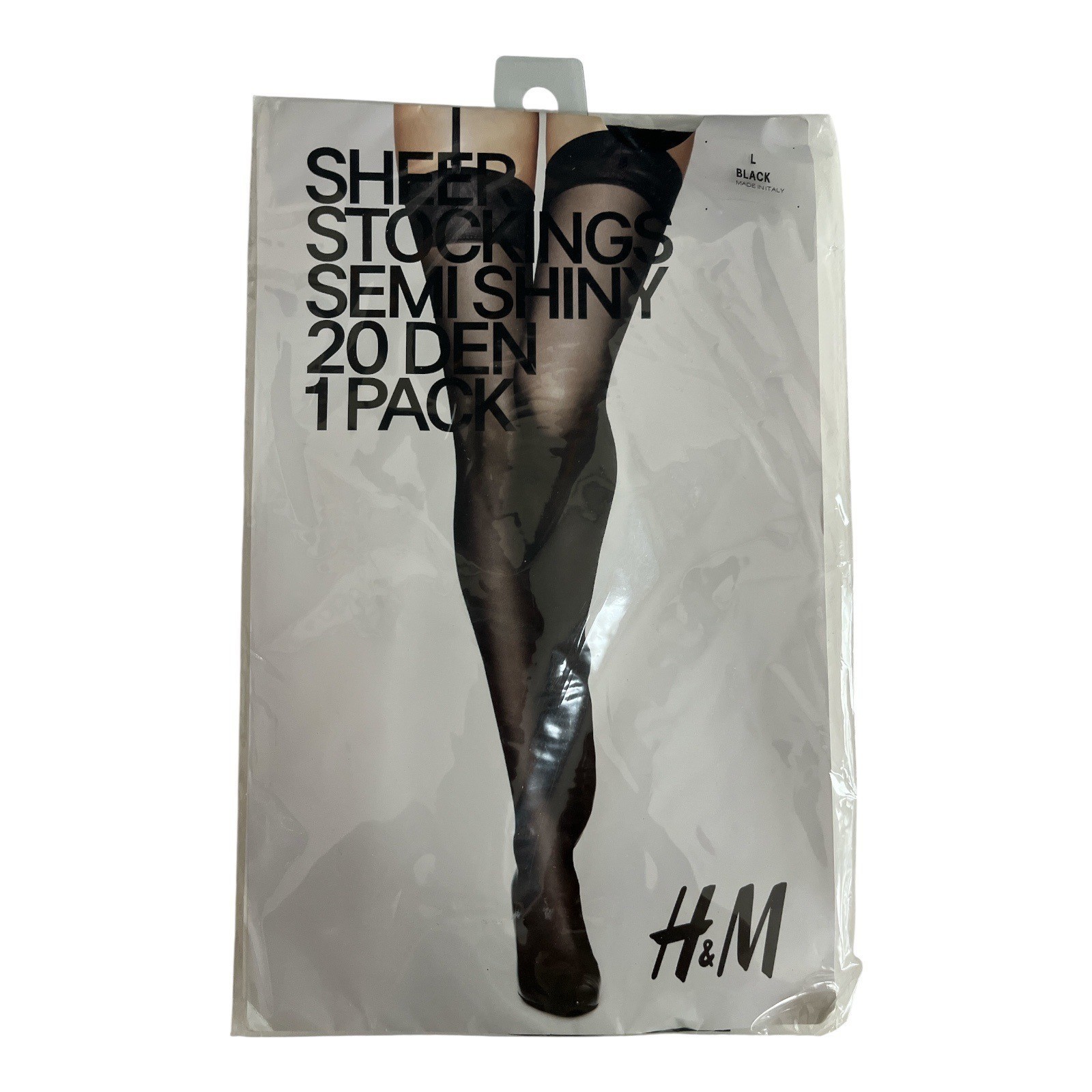 H&M Sheer Stockings Semi-Shiny 20 Denier – Size L Black, Made in Italy