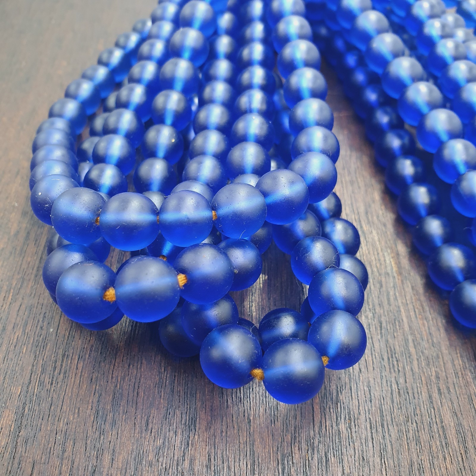 Vintage OLD AFRICAN Style Blue GLASS BEADS 10MM beads Strand