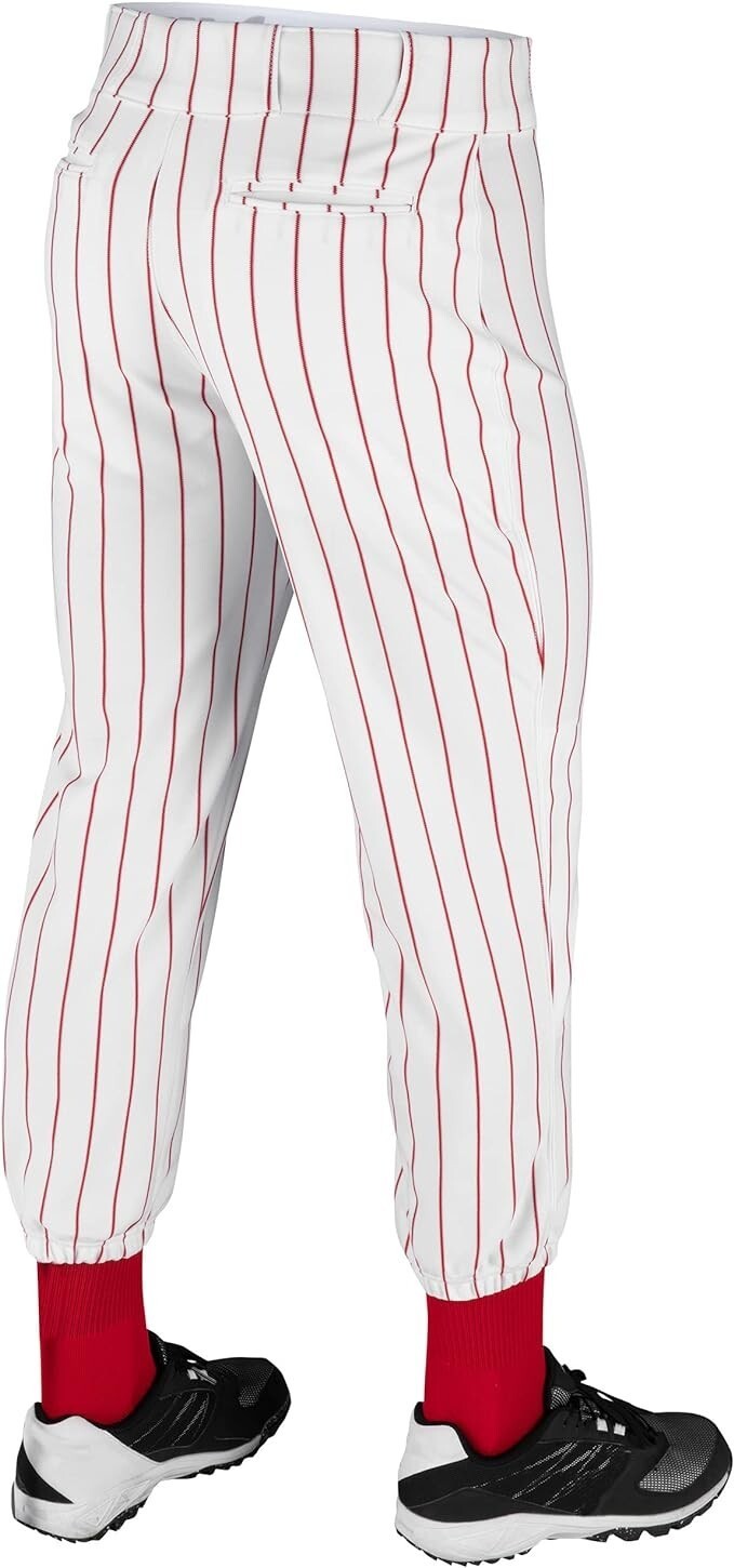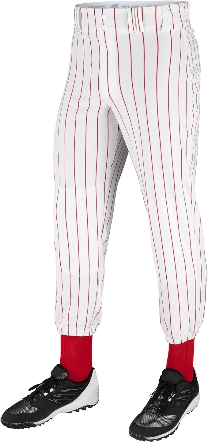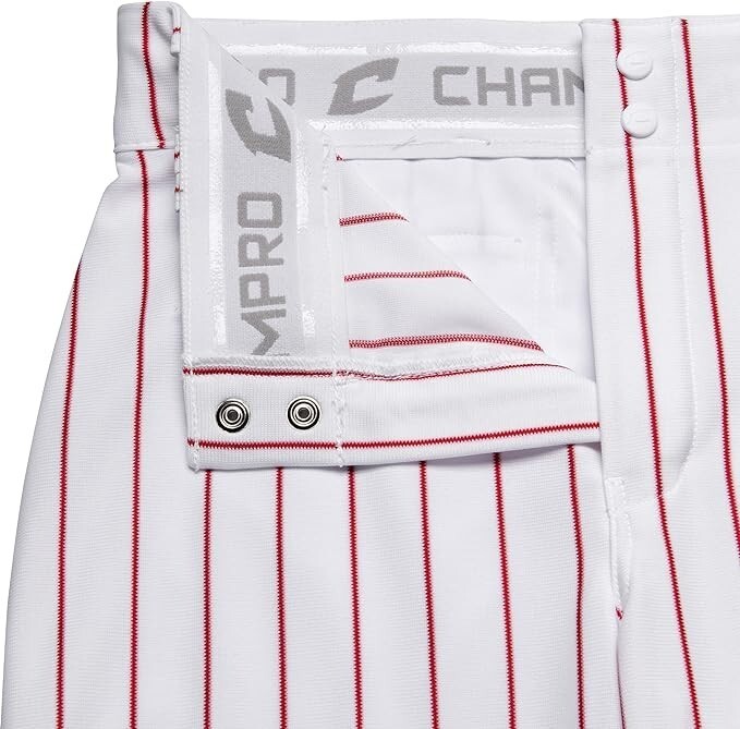 CHAMPRO Youth Triple Crown Pinstripe Polyester Pants White/Scarlet, SMALL - 24-26 inch waist