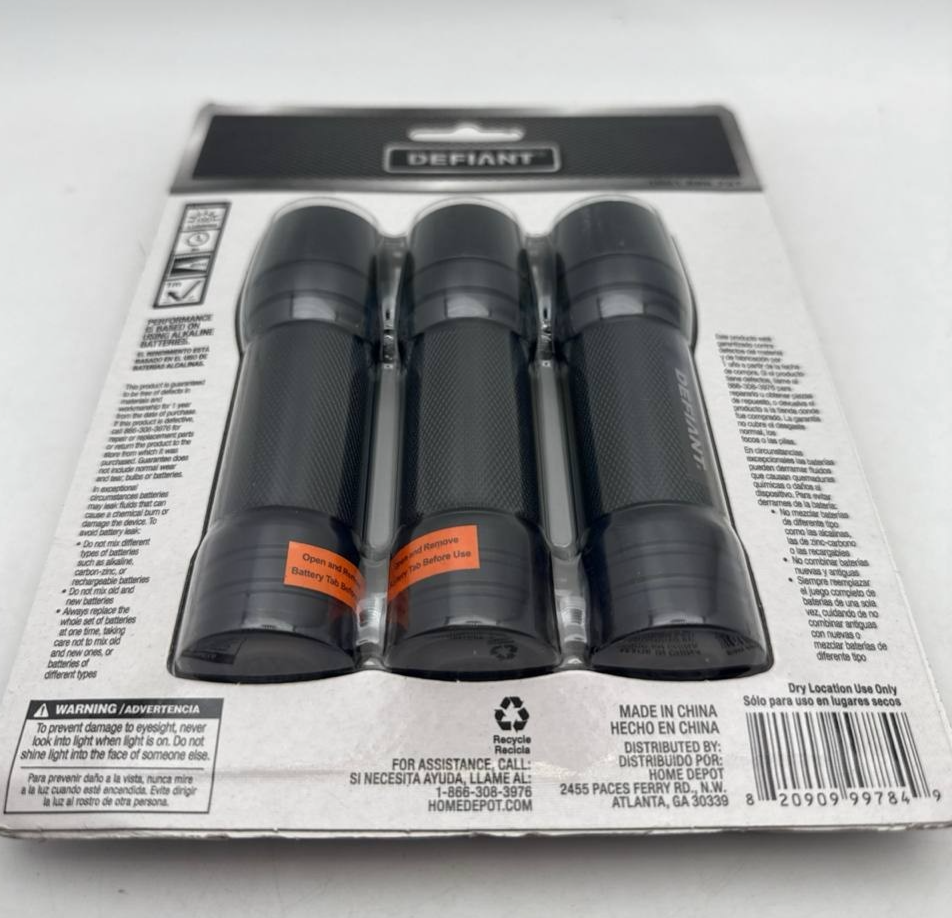Defiant 100 Lumens Aluminum Flashlight 3-Pack Handheld Lights with Batteries