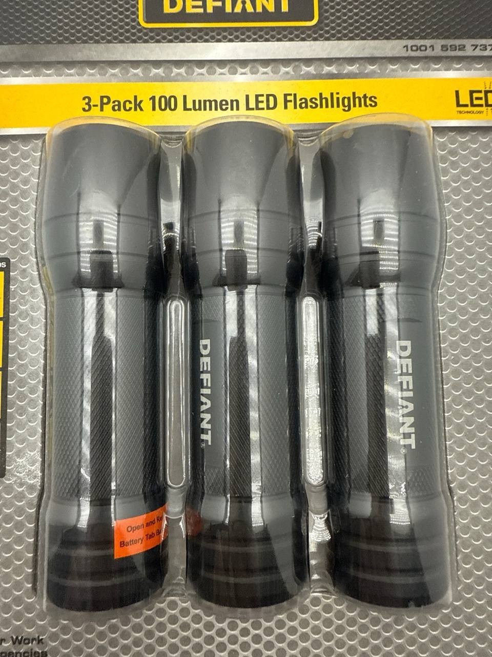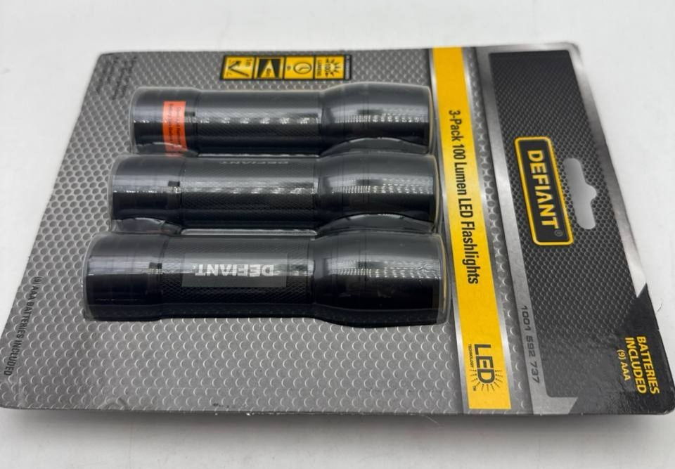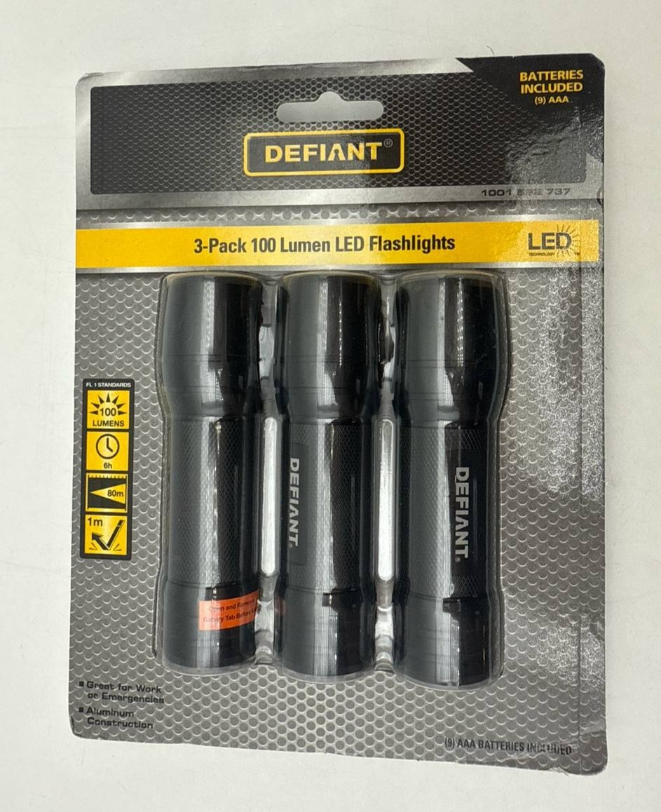 Item includes: Please note: This item includes 1x Defiant 100 Lumen LED Flashlight (3-Pack), 9x Batteries Only ? As Pictured. No other accessories are included.