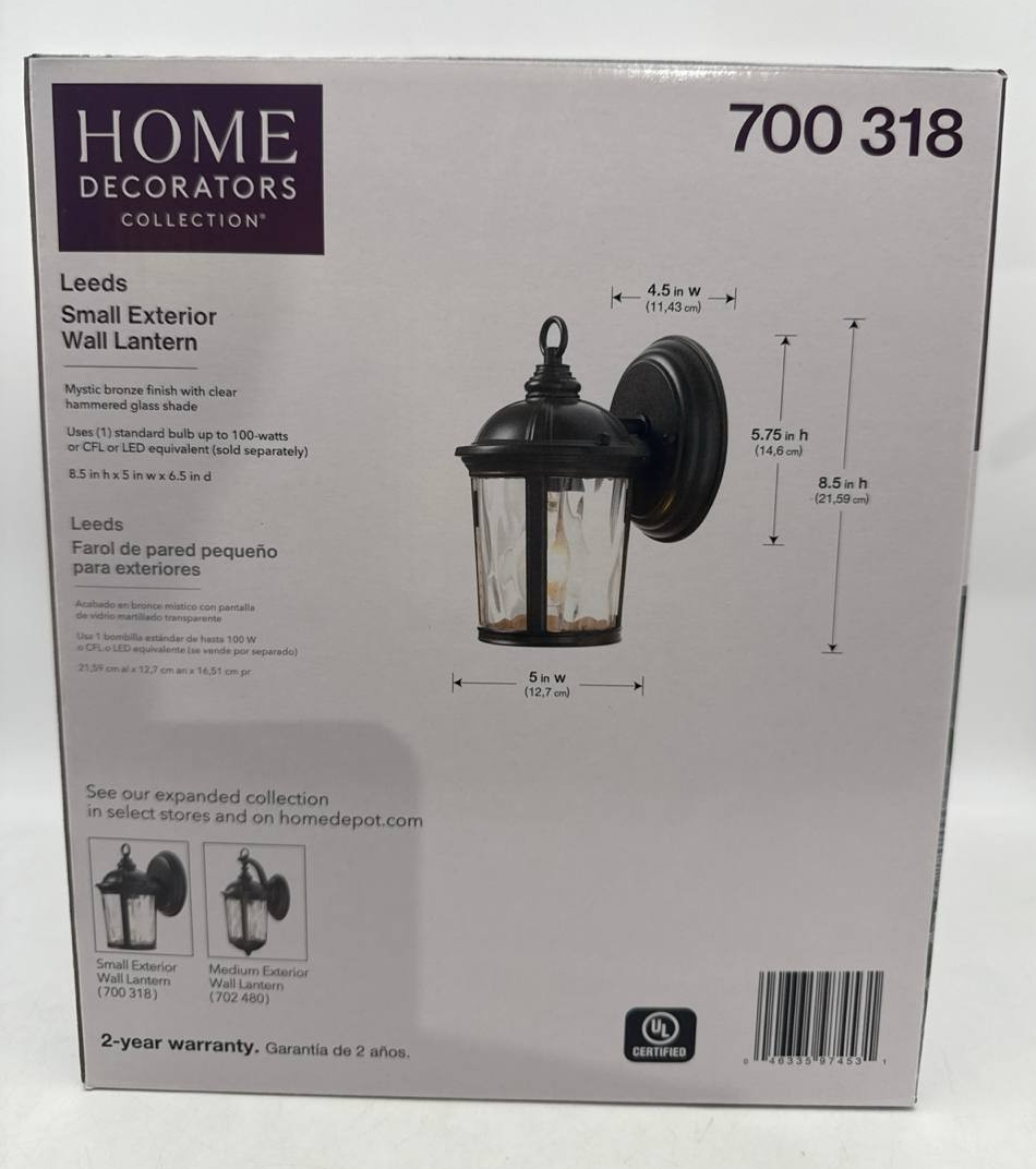 Item includes: Please note: This item includes 1x Hampton Bay Leeds Mystic Bronze 1x Light Outdoor Hardwired Wall Sconce Only ? As Pictured. No other accessories are included.