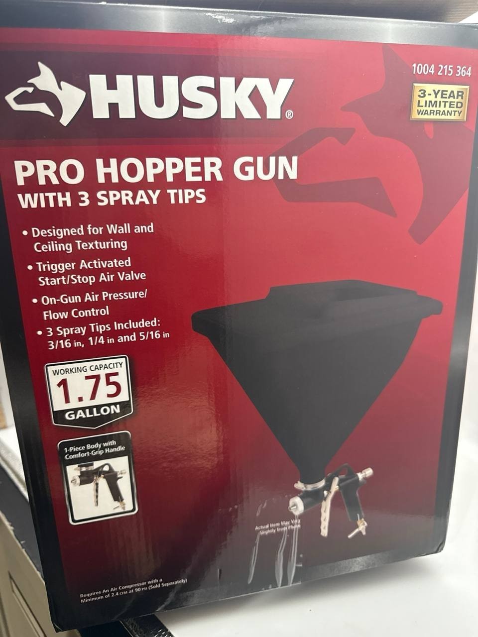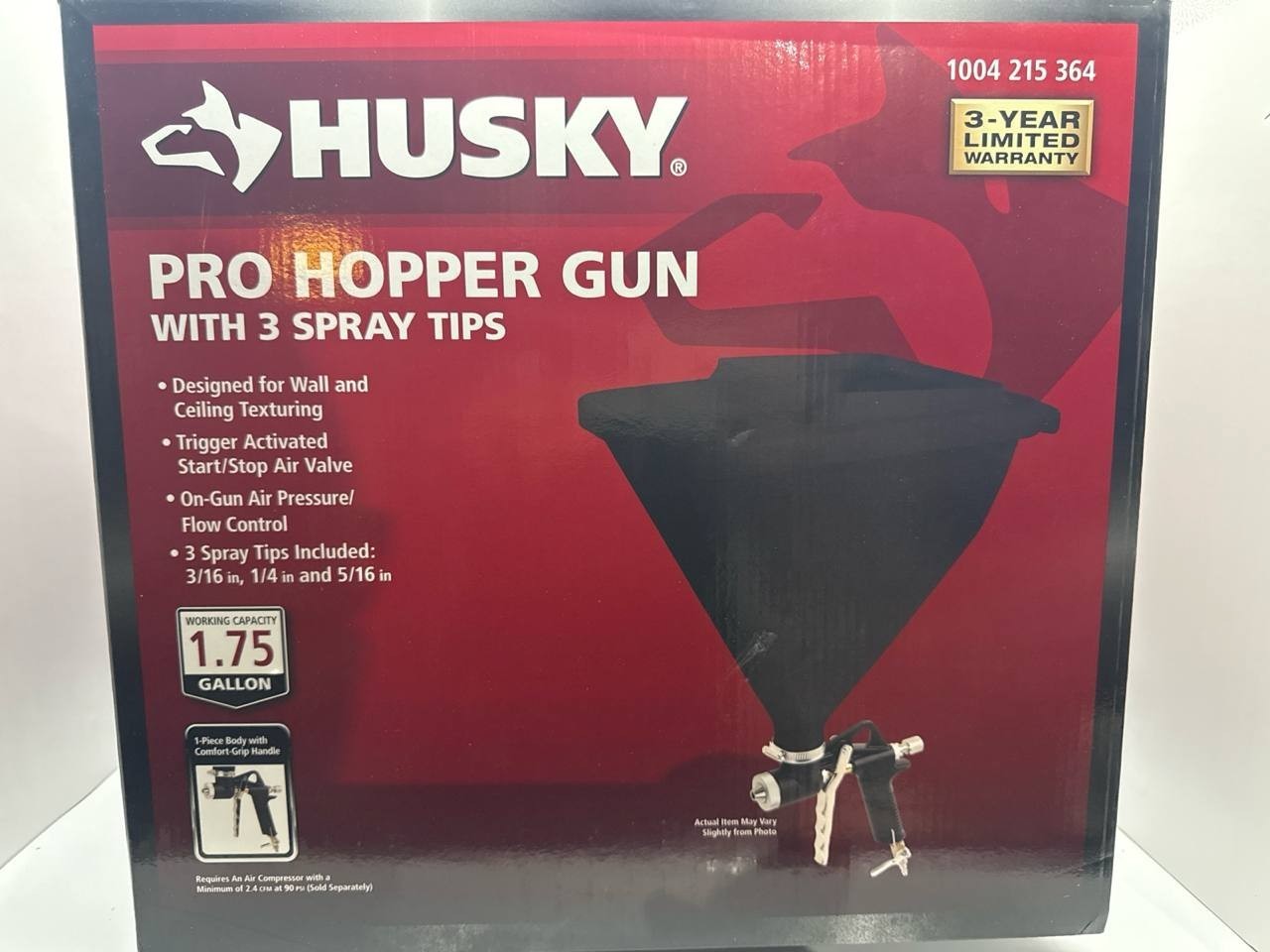 Item includes: Please note: This item includes 1x Husky Pro Spray Gun, 3x Spray Tips, 1x Aluminum Hopper Lid, Only ? As Pictured. No other accessories are included