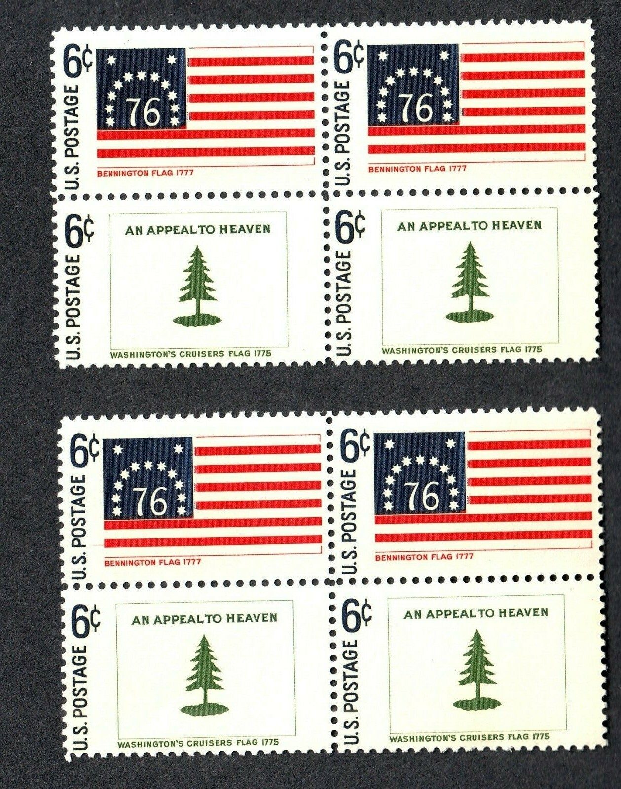 US Postage 1968 6c Historic Flags MNH 2 Blocks of 4