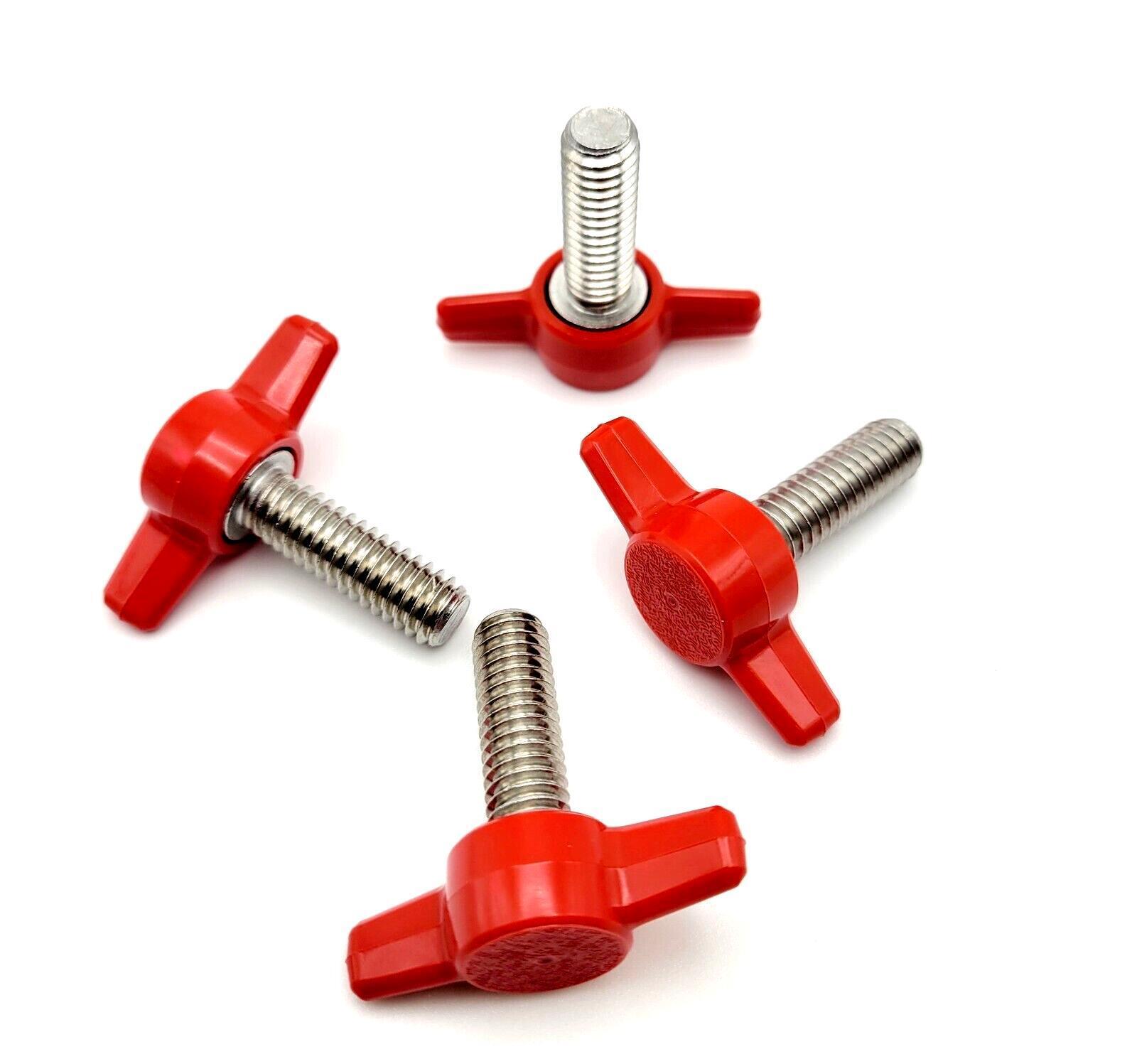 5/16" x 1" Thumb Screw T Bolts Red Butterfly Tee Wing Knob Stainless 4 Pack