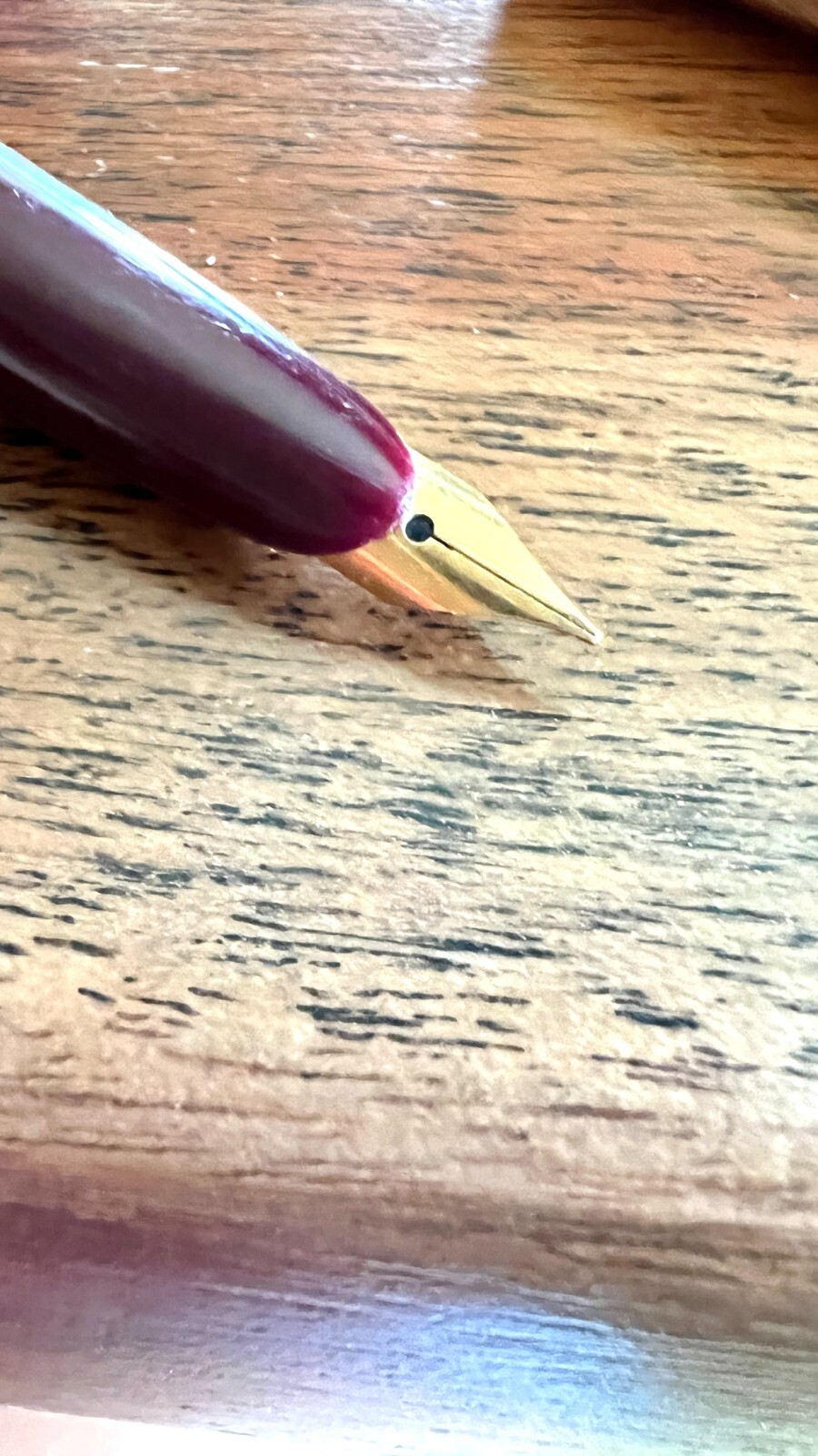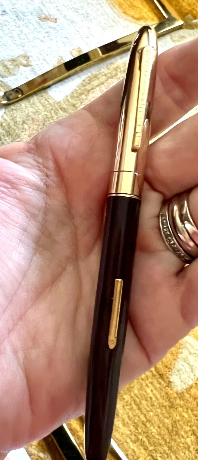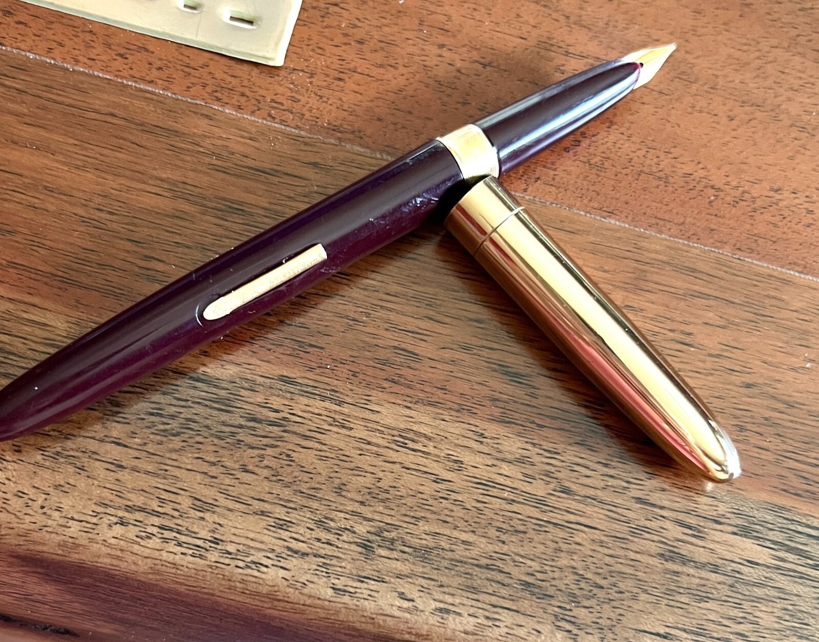 There was no ink introduced into the pen, but a dry test on paper showed a firm nib with no wobble. The pen body appears to be set up for an ink cartridge as it screws apart where the gold trim ring is.
