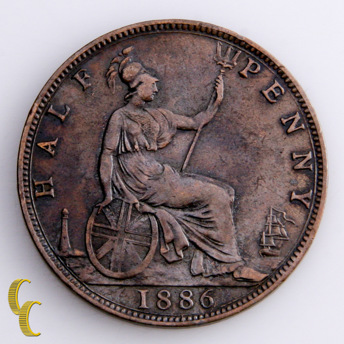 1886 Grande-Bretagne 1/2 Coin de demi-centime
