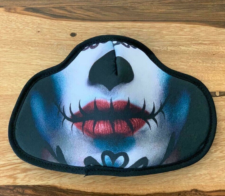 Face Mask Mexican Day of the Dead Halloween Washable Sewed Lips For Adults