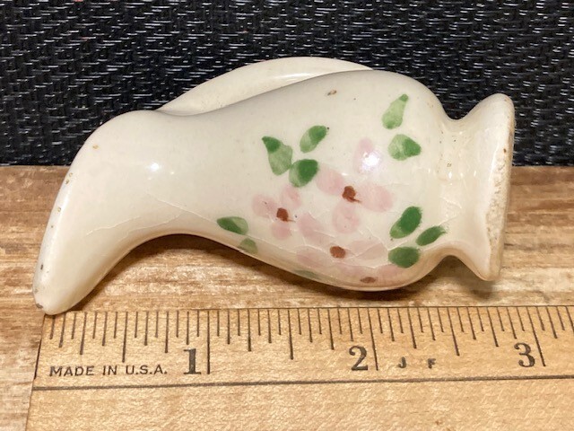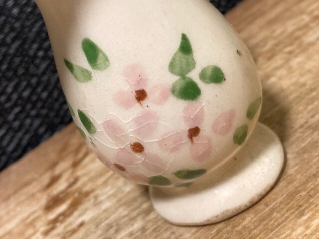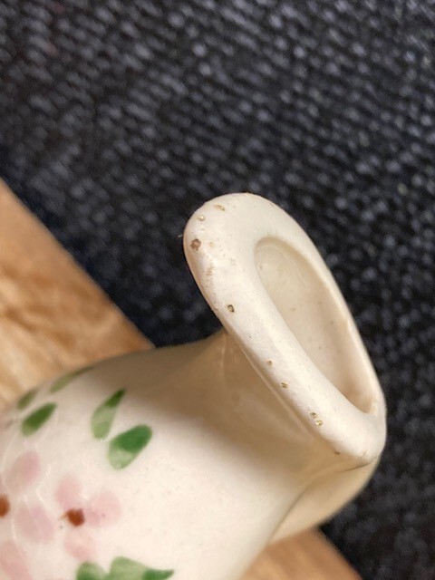 Vintage Miniature Porcelain Pitcher Vase 3" Flowers Good solid with some crazing and scuffs on top rim. Please refer to images.