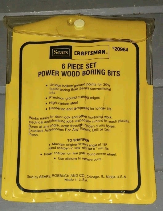 Craftsman Sears Power Wood Boring Bit Set 20964 - 6 bits included