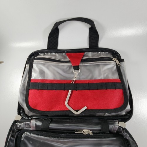 The lightweight bag has many pockets and compartments to store all of your travel needs. It has a hook to hang the bag on a door hoor or on the shower curtain rod for easy access to all of your items.