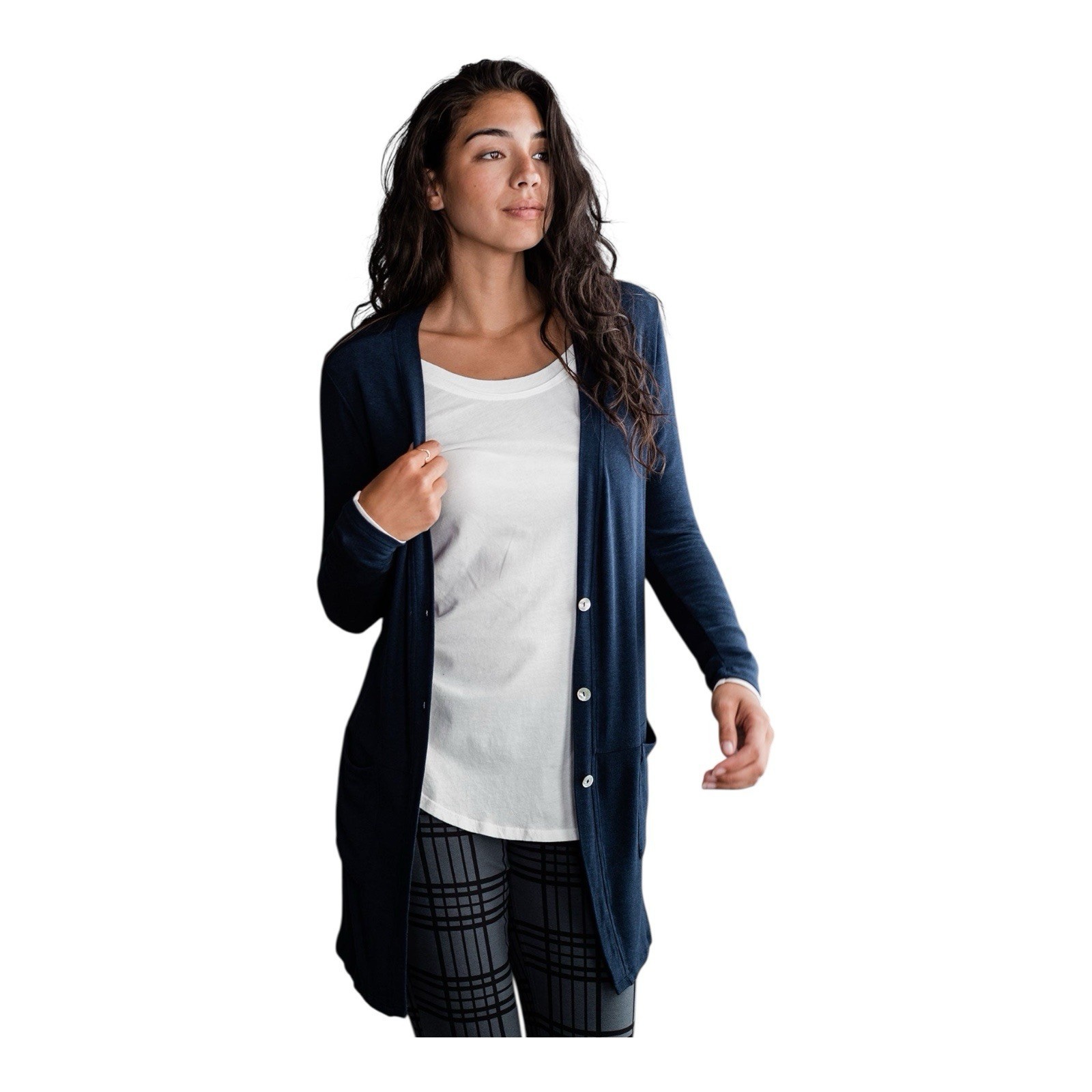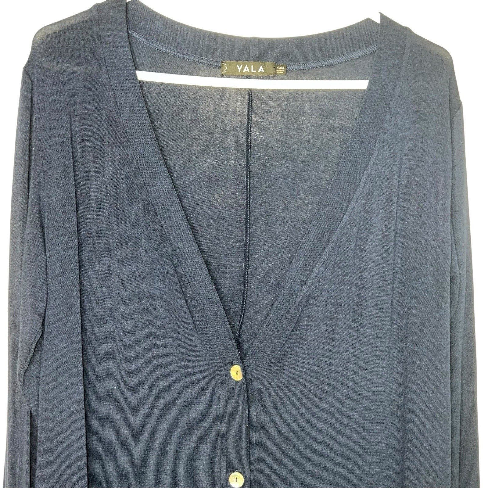 YALA LESLIE LONG SLEEVE OVERSIZE BAMBOO CARDIGAN SLOUCH POCKETS BLUE WOMEN S/M