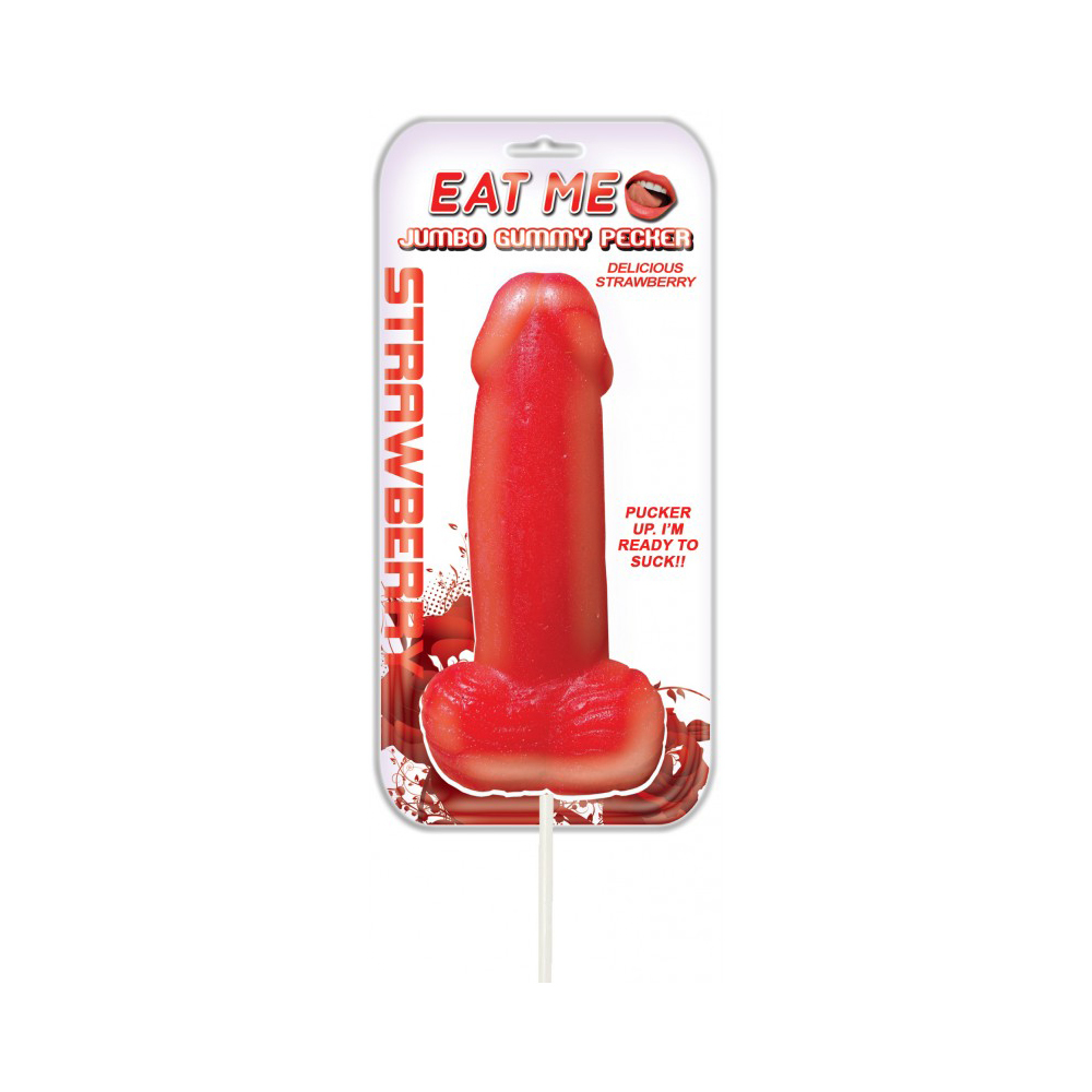 Open up and lick and suck with the โJUMBOโ Strawberry Pecker Edible Gummy Cock Pop! Succulent Super sweet strawberry taste will have your lips puckered up and ready to suck!...and will drive anybody within Eye Shot wild with erotic excitement!