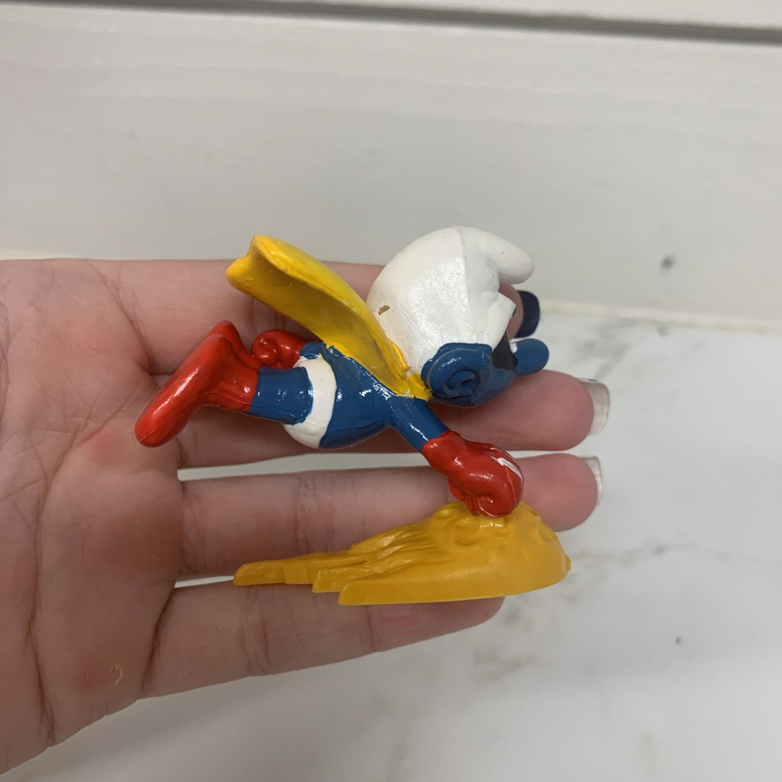 Smurfs Superman Flying Super Hero Figure 1980 Vintage Schleich PVC Toy Peyo