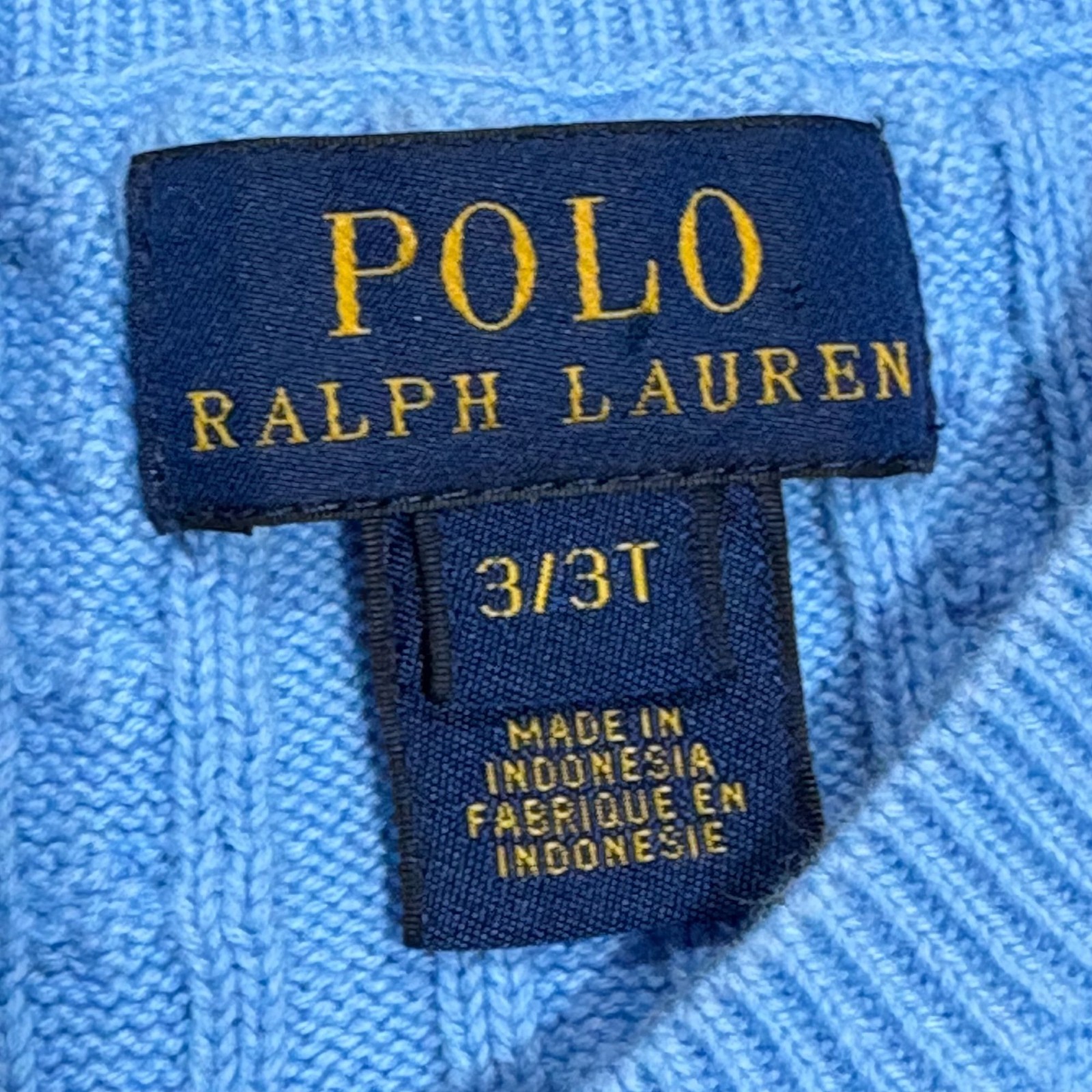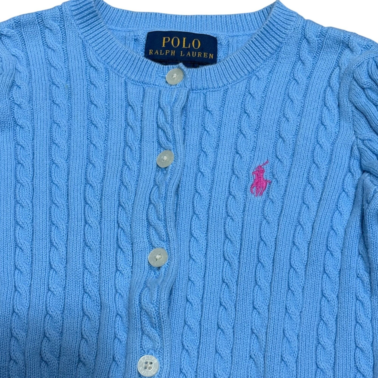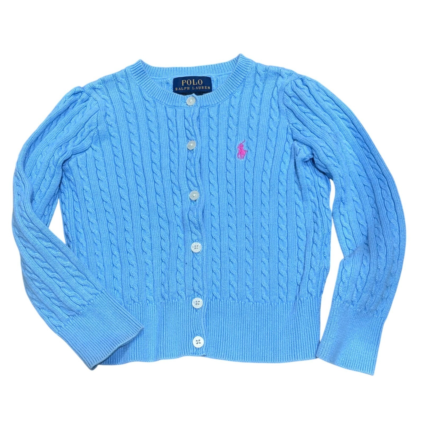 Ralph Lauren Girls Cable Knit Cardigan Sweater Blue 3/3T 100% Cotton Button Fron