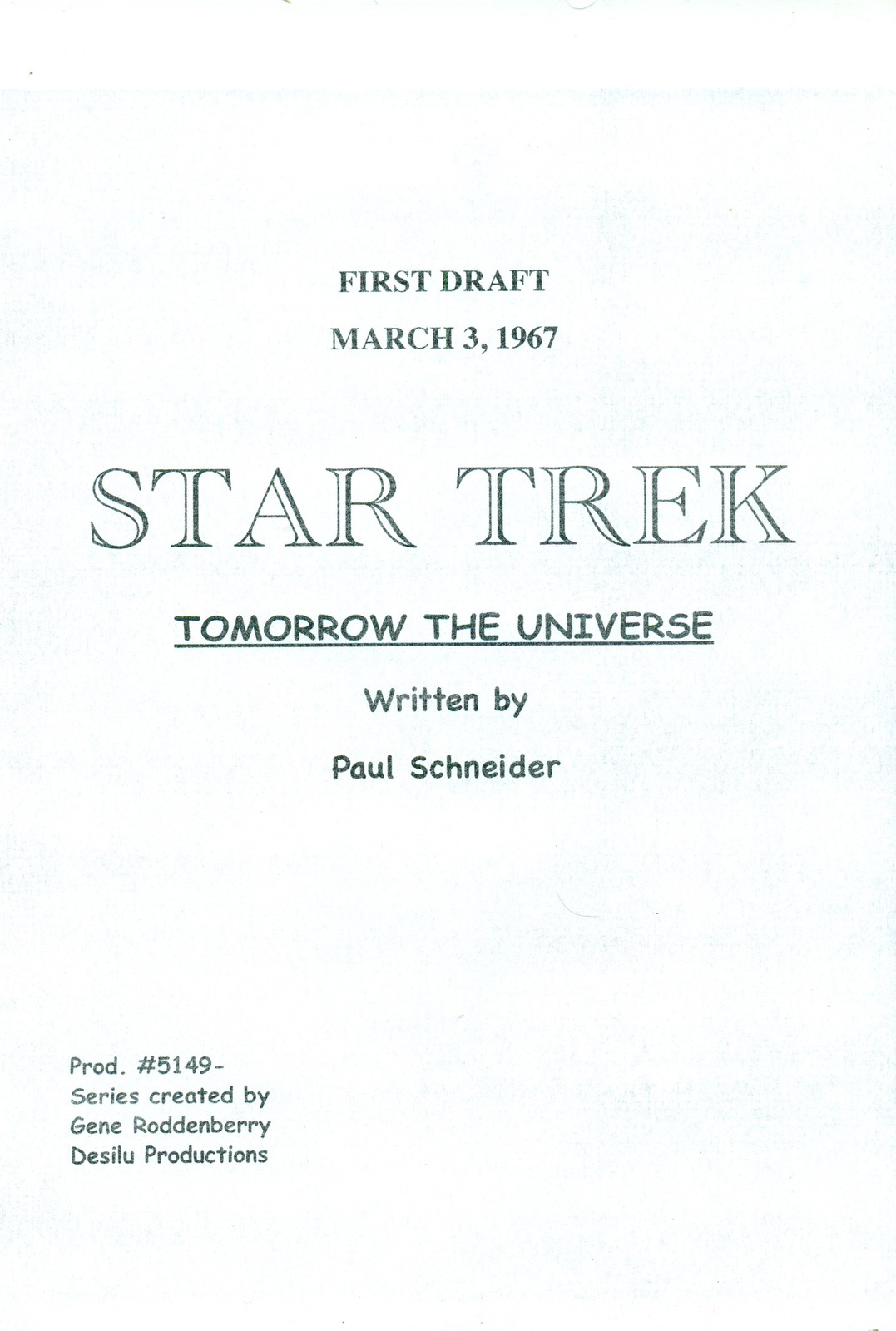 STAR TREK: TOMORROW THE UNIVERSE unfilmed 1967 repro TV series script