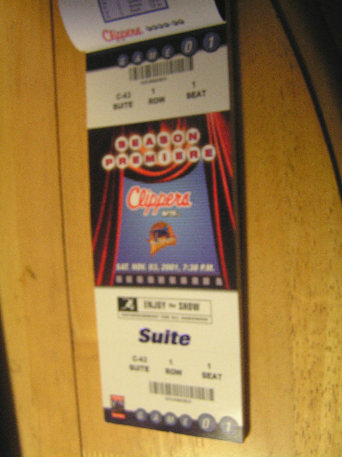 LA Clippers Vs. Warriors 11/3/2001 (Taken From Book) Season Premiere $2.49 Each
