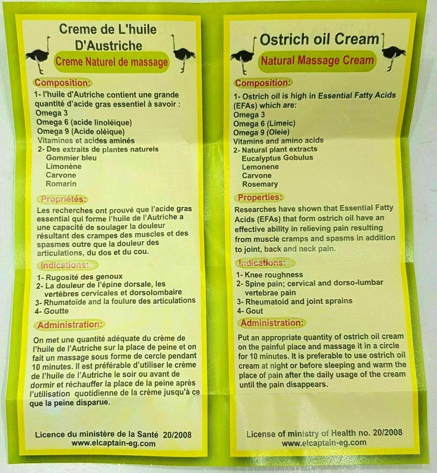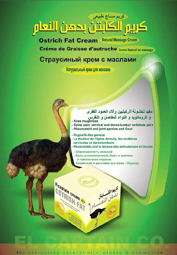 - (1) "Cream Ostrich Ostrish Fat Cream El Captain Natural Herbal (2.11 oz / 60 gm)