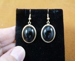 (Internal #EE471-200) This is a beautiful pair of dangle earrings with black Onyx gemstone cabochons (14x11 mm), 1" long x 3/4" wide, on brass dot oval, French hypoallergenic pierced wires. This is exactly what you would receive. WE SHIP WORLDWIDE!