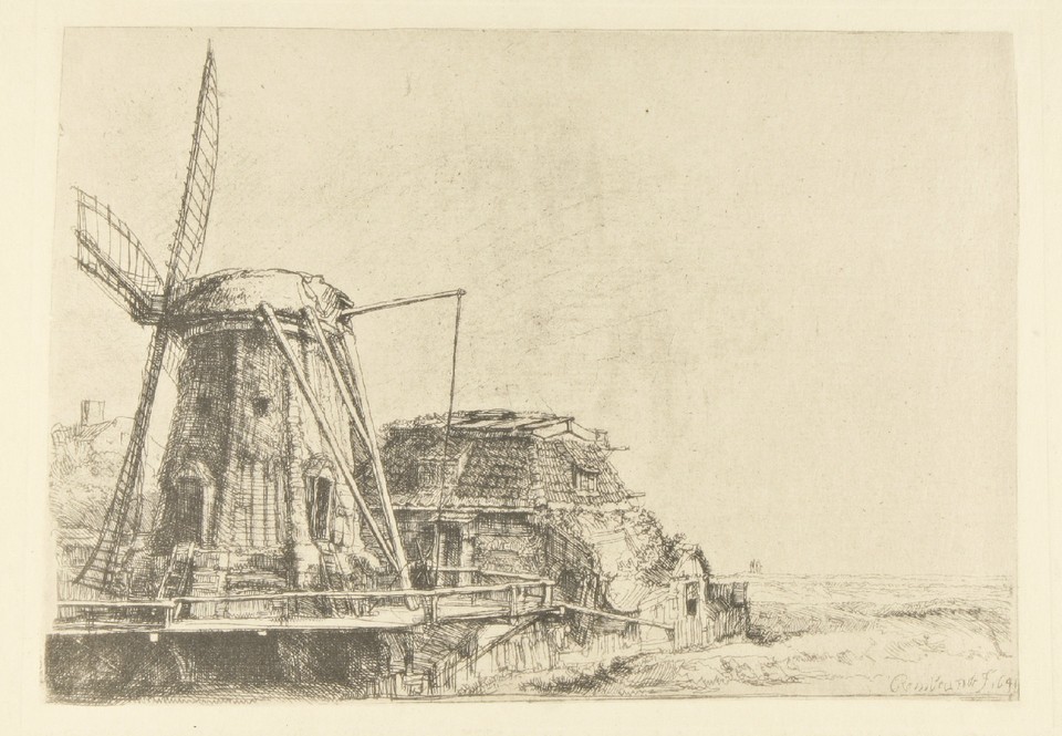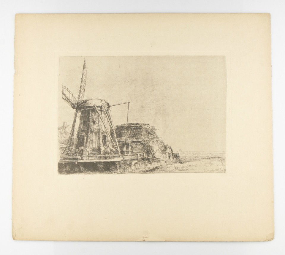 "The Windmill" By Rembrandt Restrike Etching Signed in Plate 6"x8"