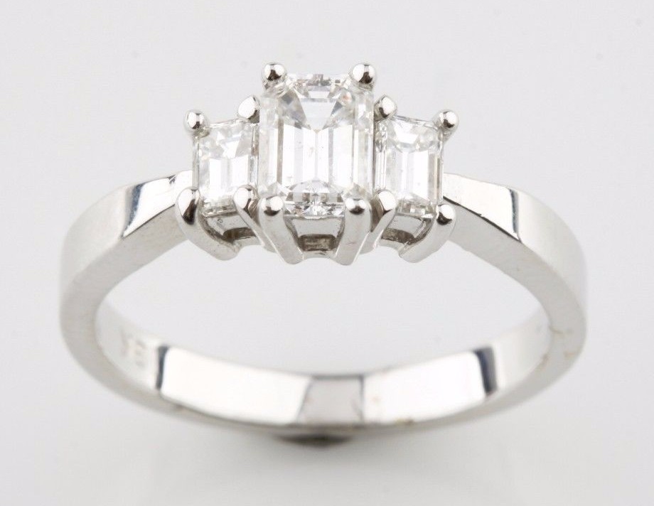 - 1.00 carat Emerald Cut Diamond 18k White Gold 3-Stone Engagement Ring Size 6.5