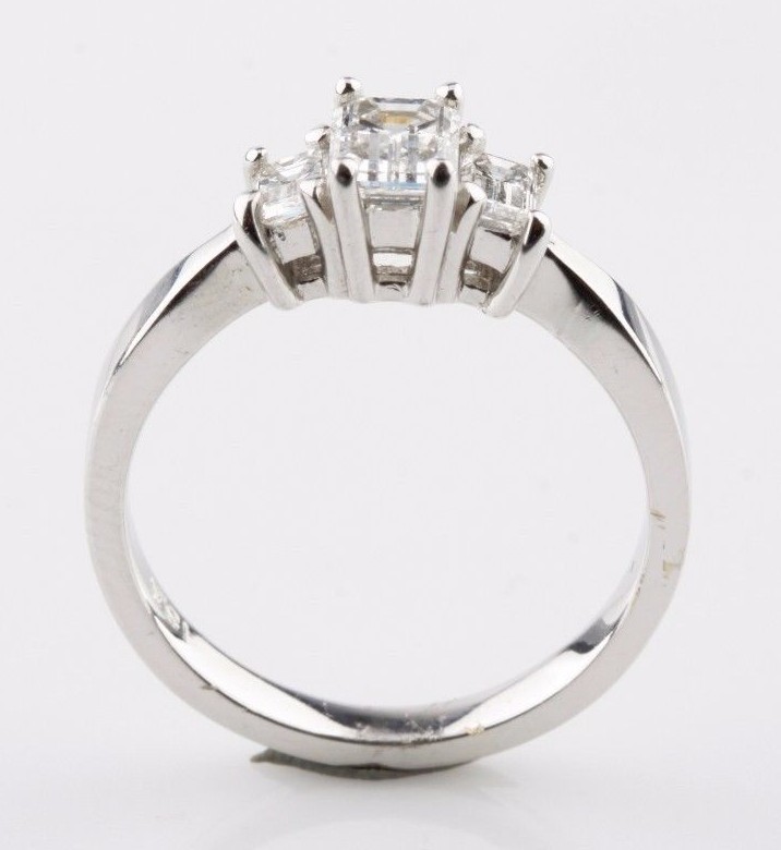 18K White Gold 3-Stone Emerald Cut Diamond Engagement Ring Sz 6.5 TDW = 1.00 ct