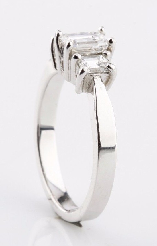 1.00 carat Emerald Cut Diamond 18k White Gold 3-Stone Engagement Ring Size 6.5