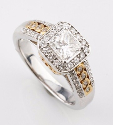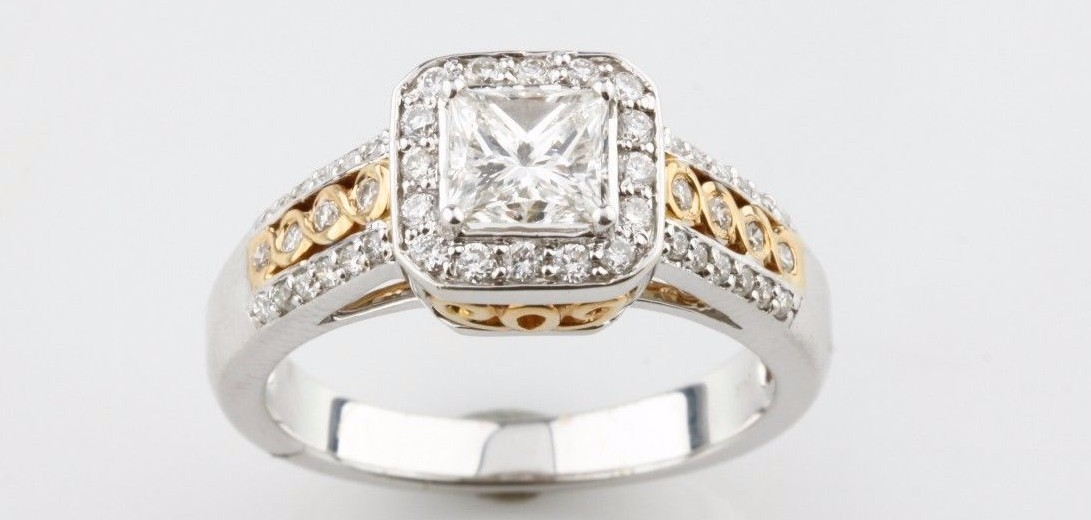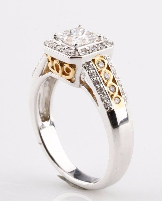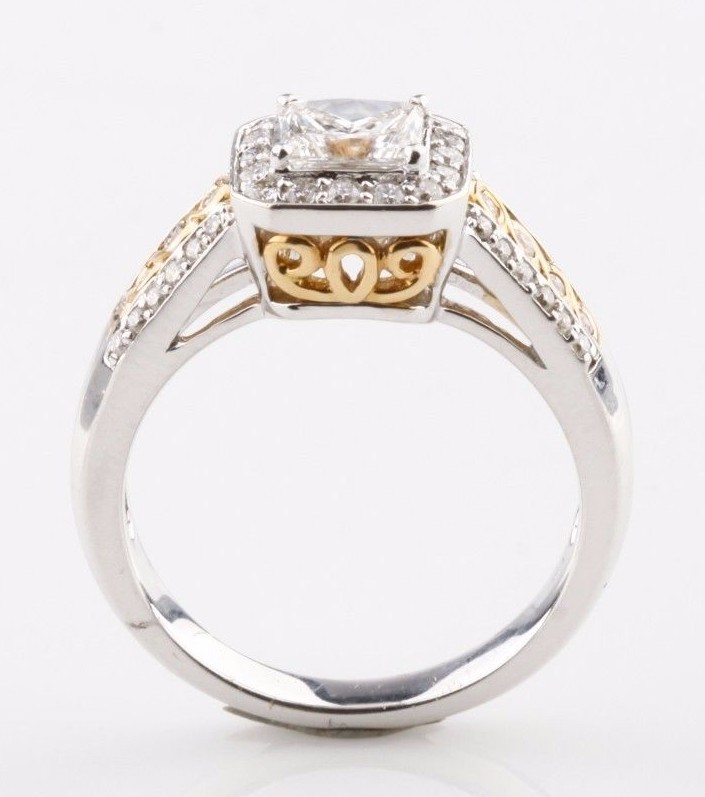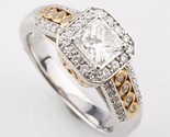 - 1.21 CTW Princess Cut Diamond Halo Set 14k Two-Tone Gold Engagement Ring Sz 7