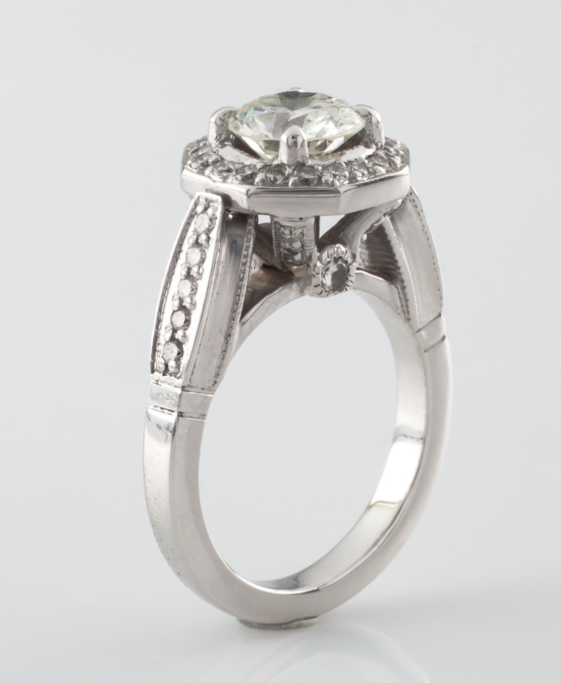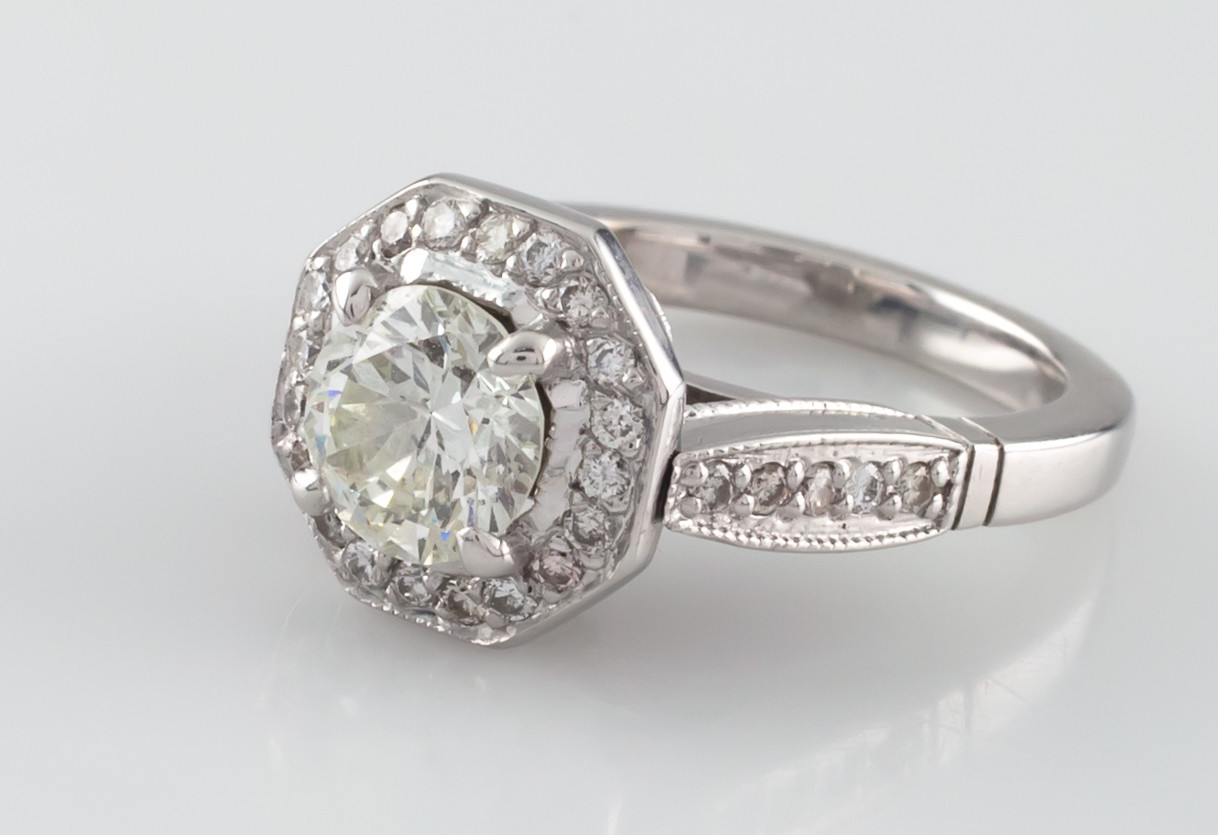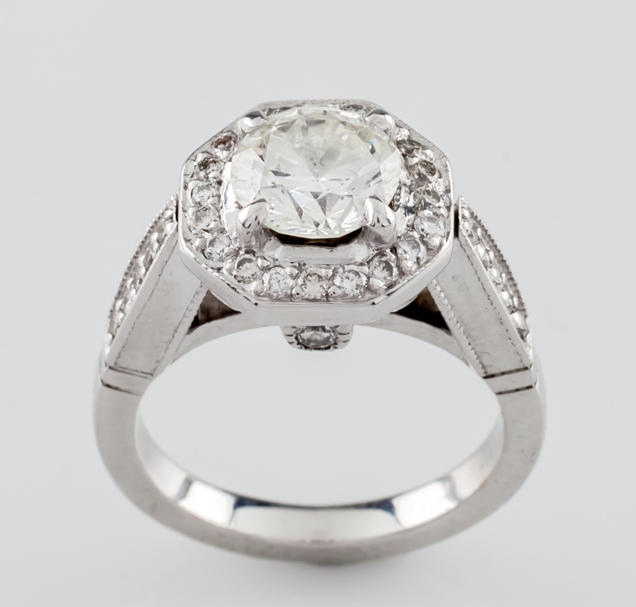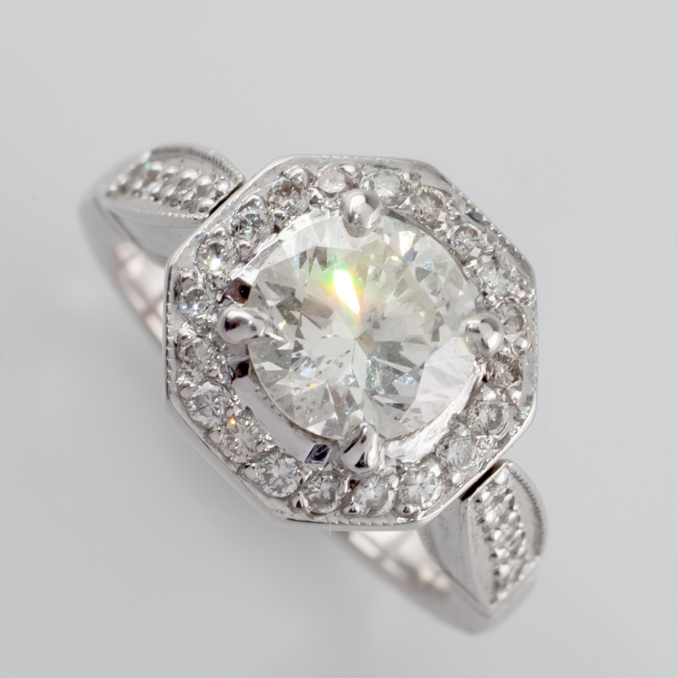 Wunderschoner runder brillanter Cut Diamond in Octaga -Form -Diamanthalo
