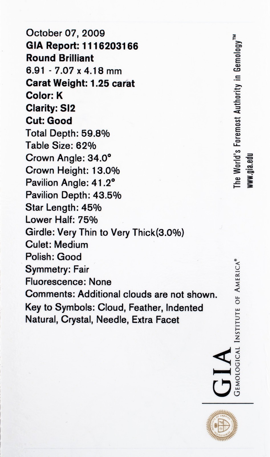 Enthalt GIA -Bericht für Center Stone, das lautet: