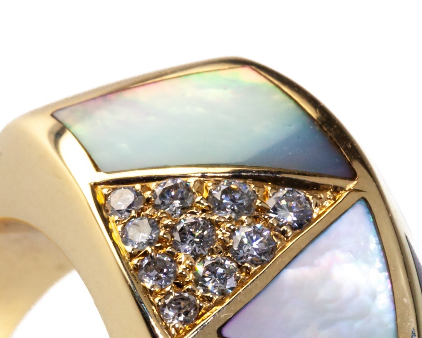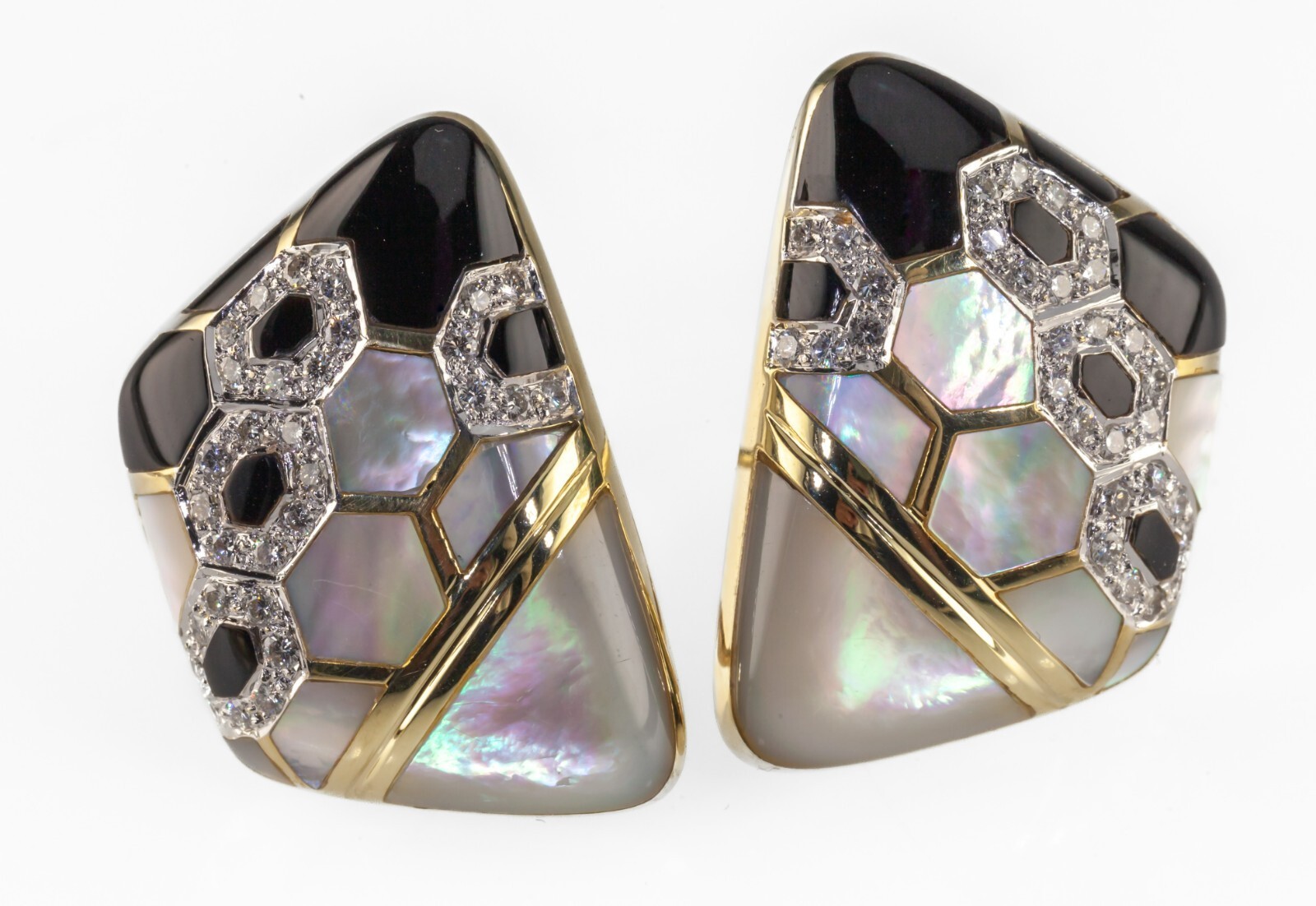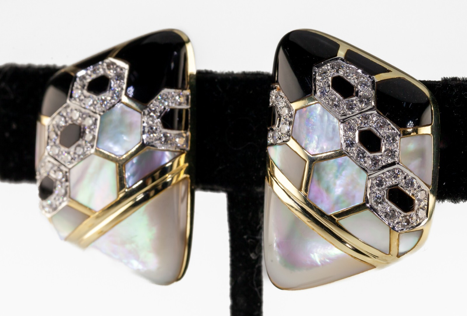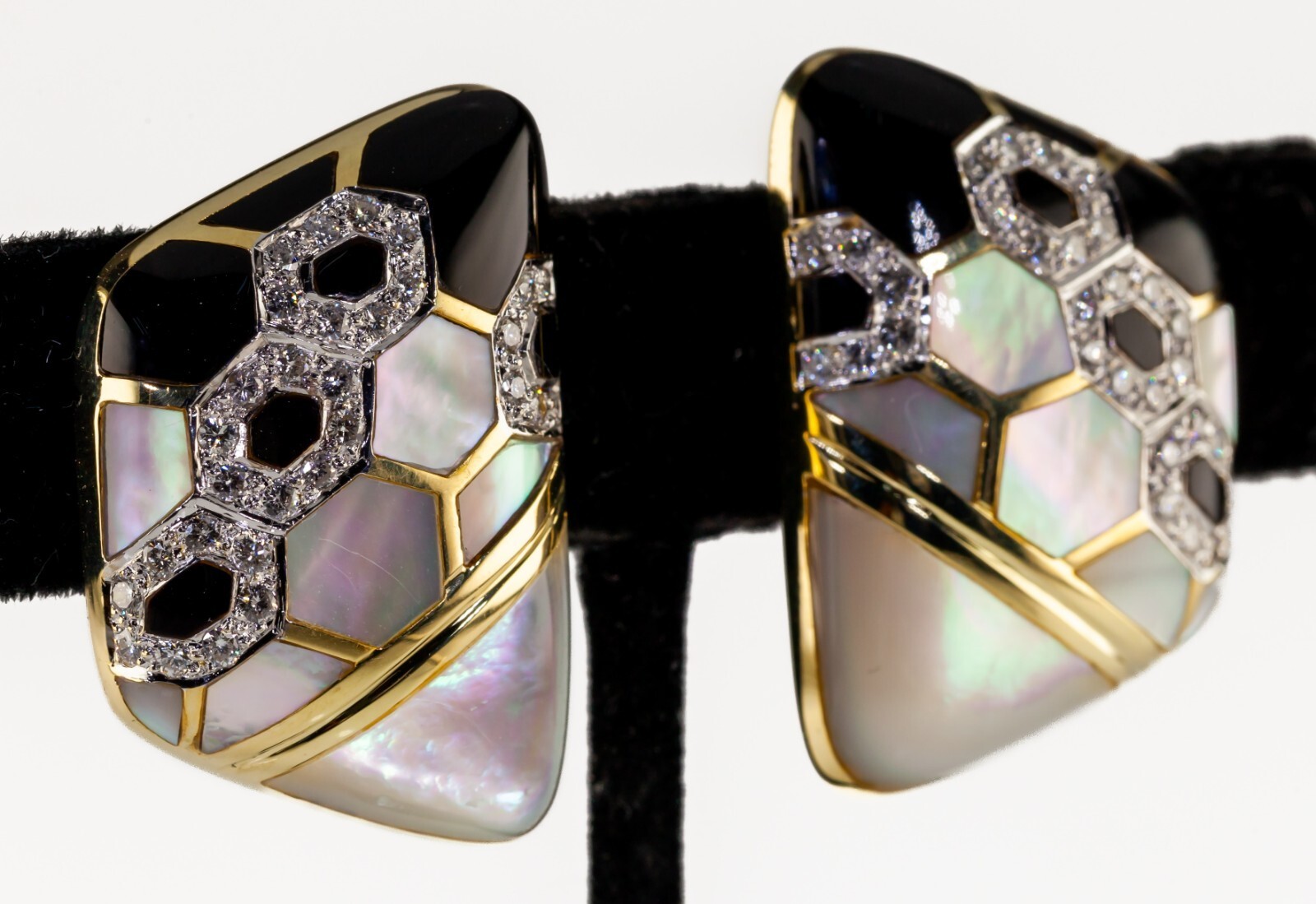 14k Gelbgold Perlmutt, Onyx, und Diamant Ring Und Ohrring Set