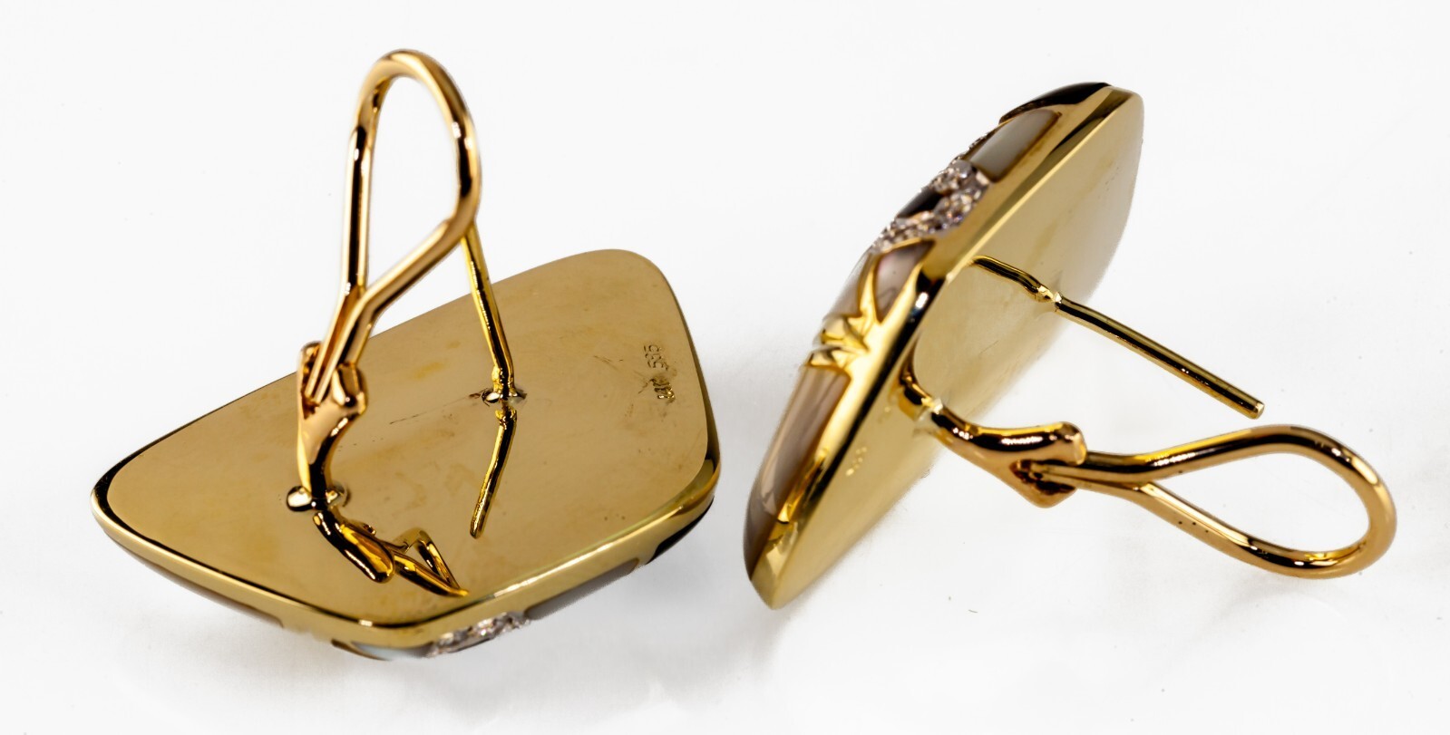 14K Gelbgold Mutter Der Perle, Onyx Und Diamant Ring Und Ohrringe Set