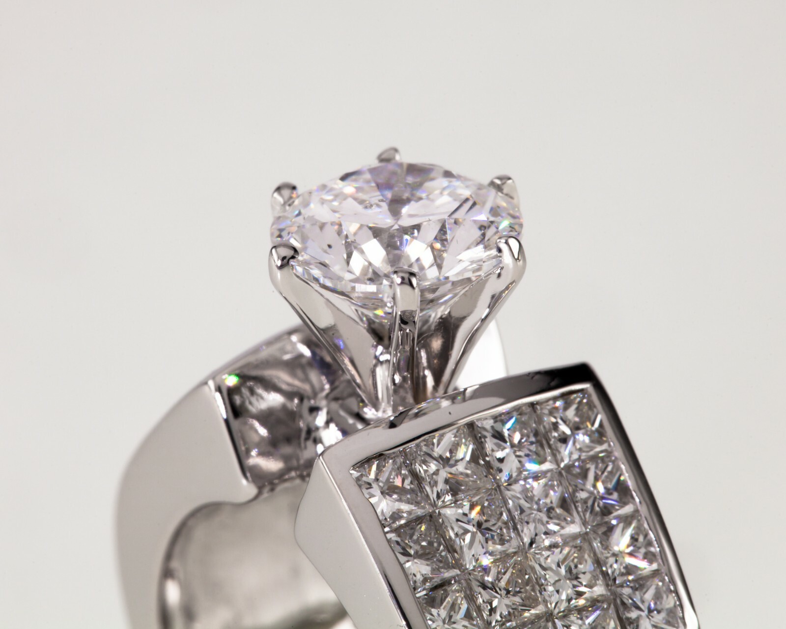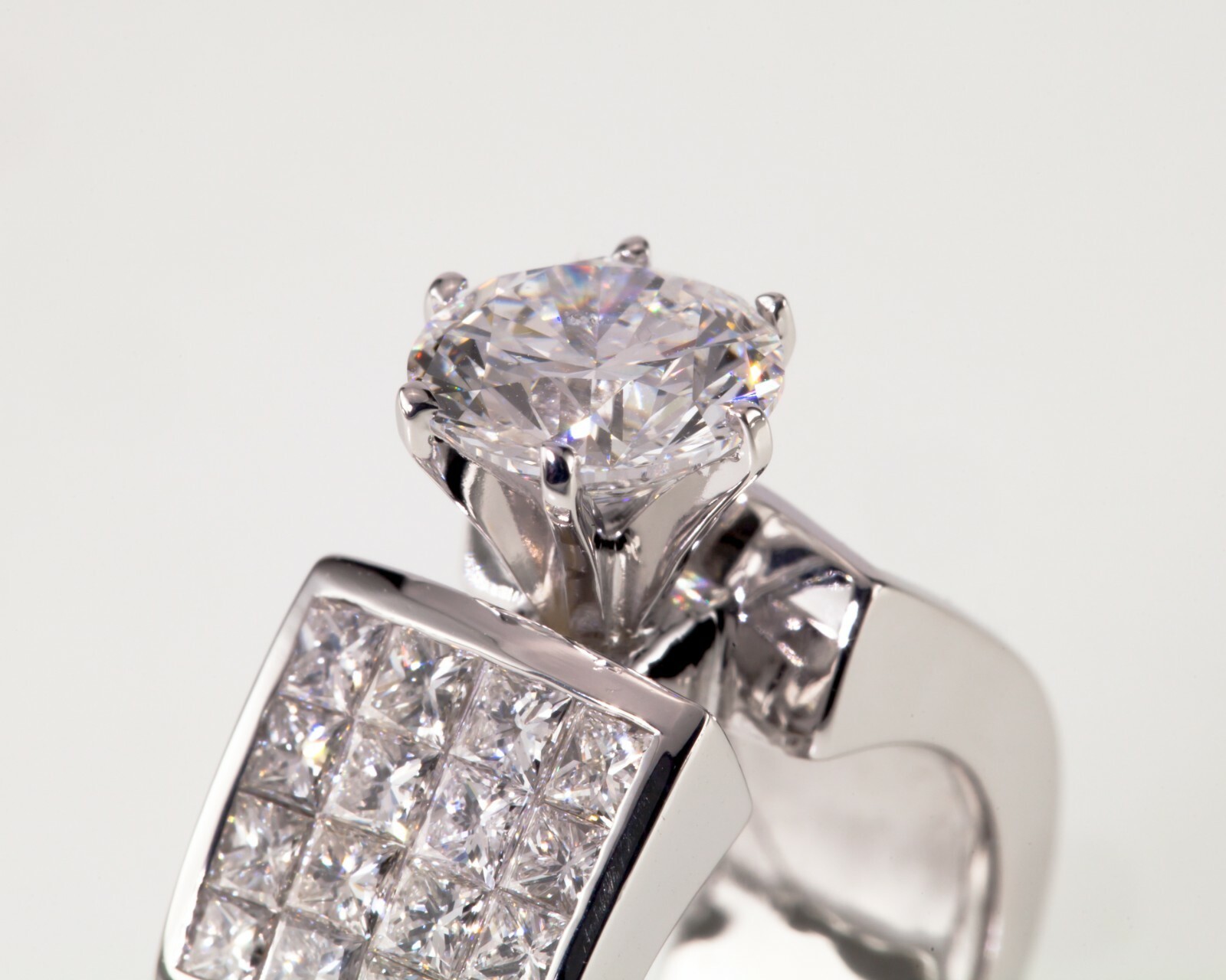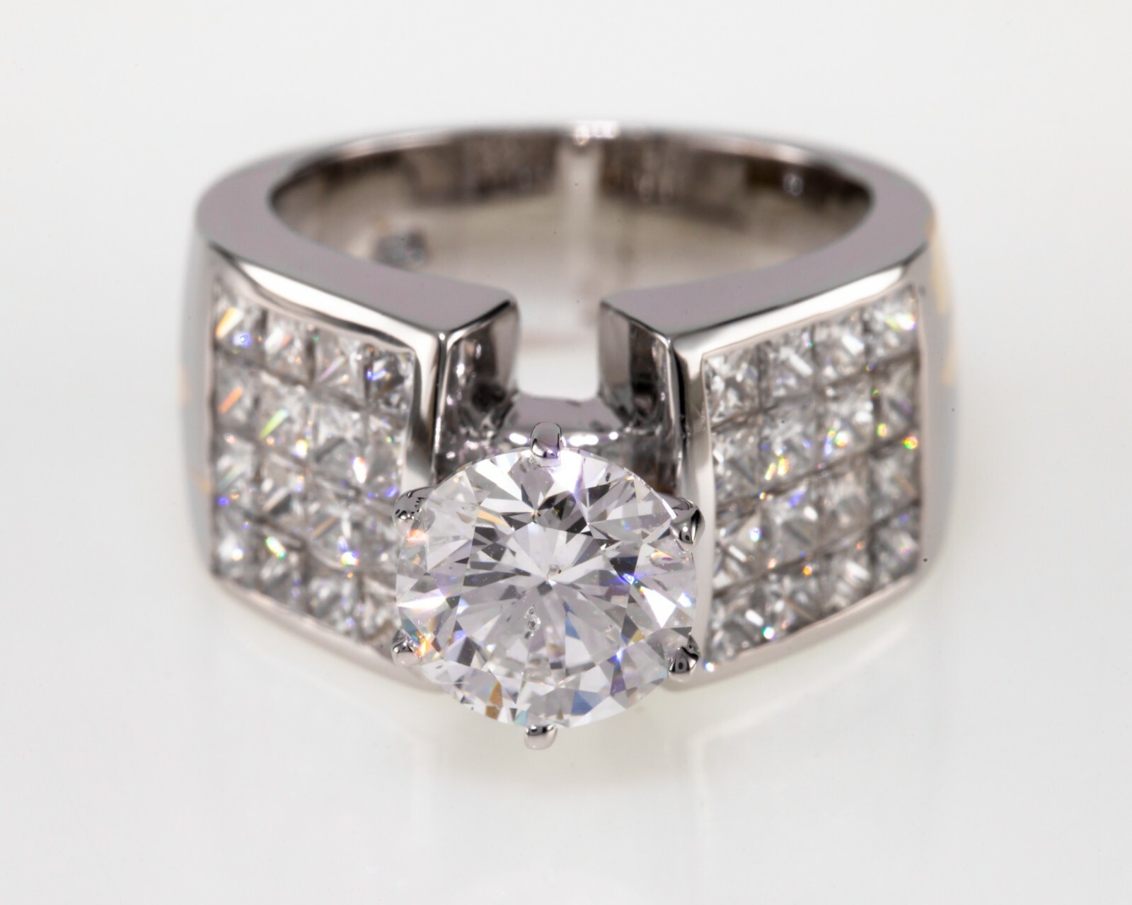 Features 2.25 Cts of Princess Cut Invisible Set Accent Stones (VS Clarity, G-H Color)