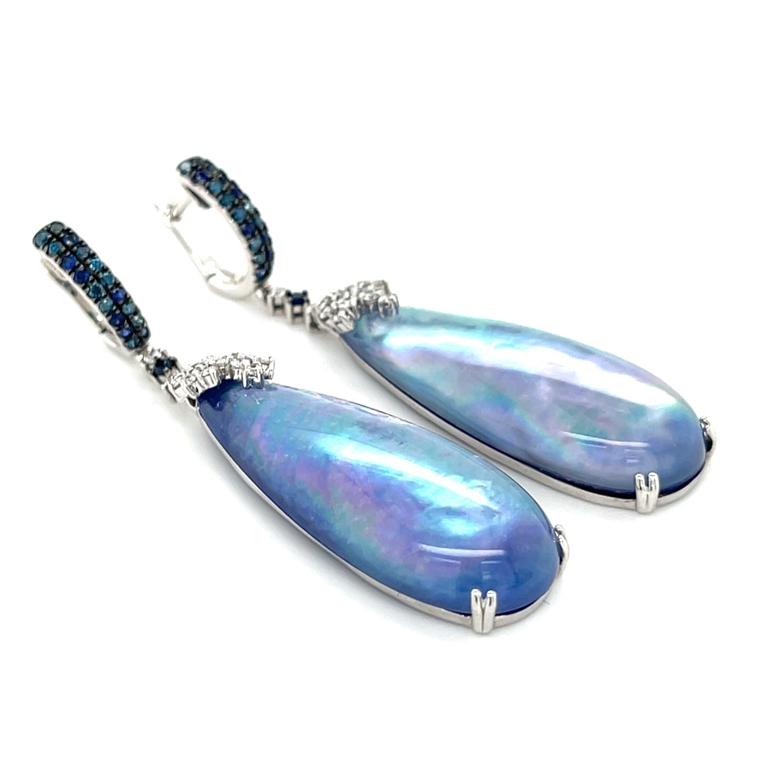 14k White Gold Crystal Topped Abalone Drop Earrings with Dia and Sapp Accents