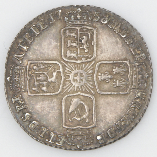 - 1758 Great Britain 6 Pence Exrra Fine+ XF+ George II England Silver KM#582.2